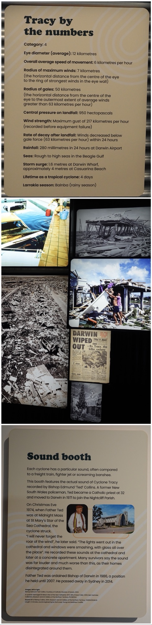 When we realized that Cyclone Tracy flattened 84% of Darwin, and displaced 94% of its citizens, whose homes were destroyed or uninhabitable, those facts put into stark perspective why the museum – built in 1981 – contains virtually no “old” items. They were all blown away, washed away, or otherwise destroyed.