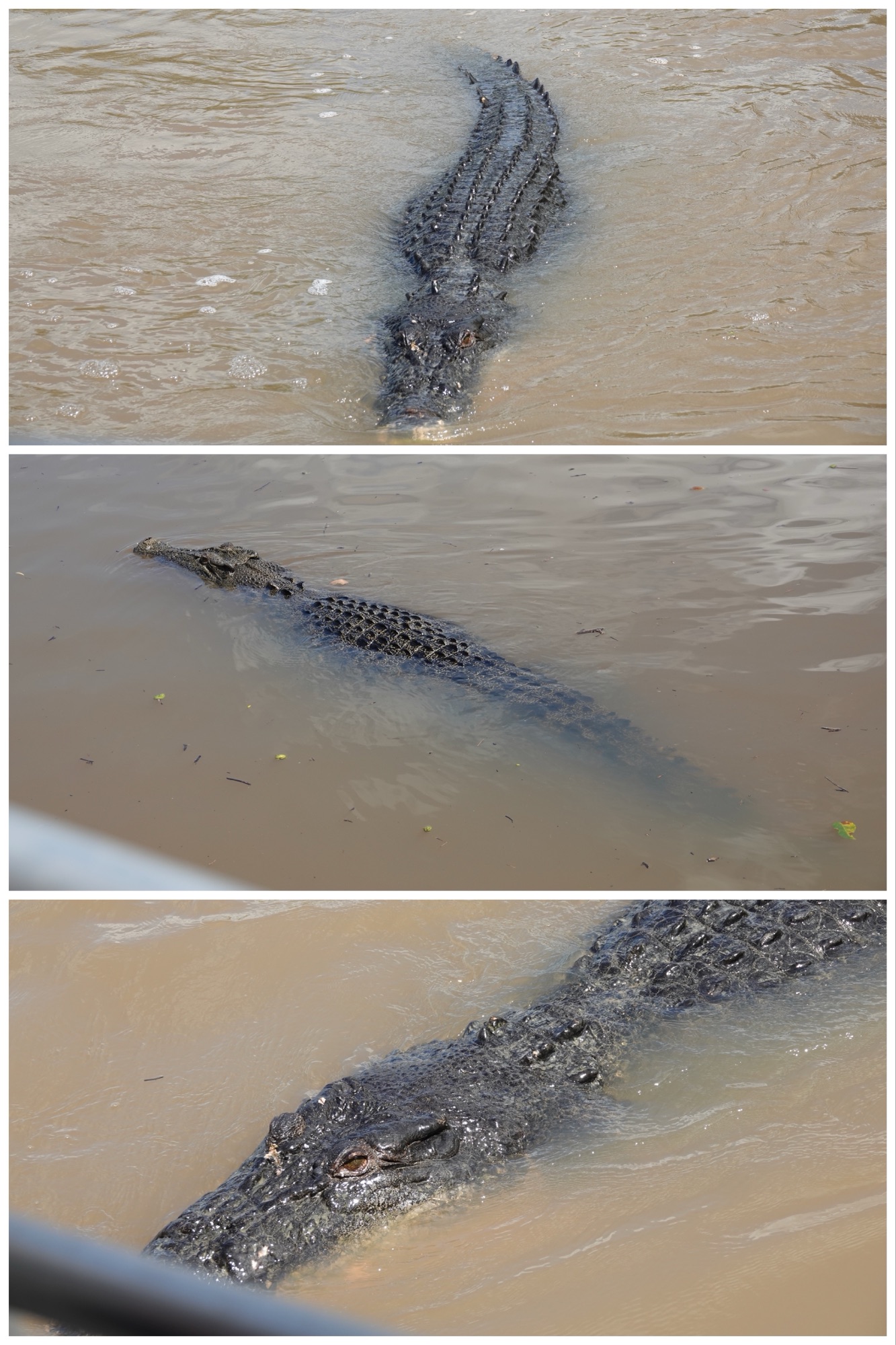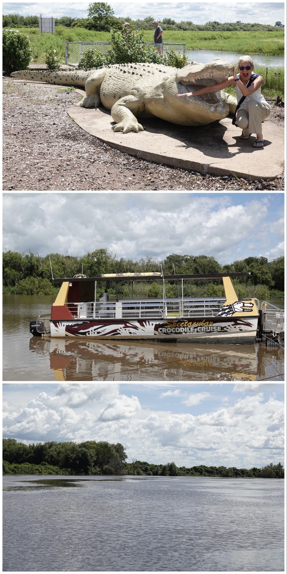 Centre: our crocodile cruise boat. Bottom: the stunningly beautiful Adelaide River, home to about 5 crocodiles per kilometre, for a total of around 1200.