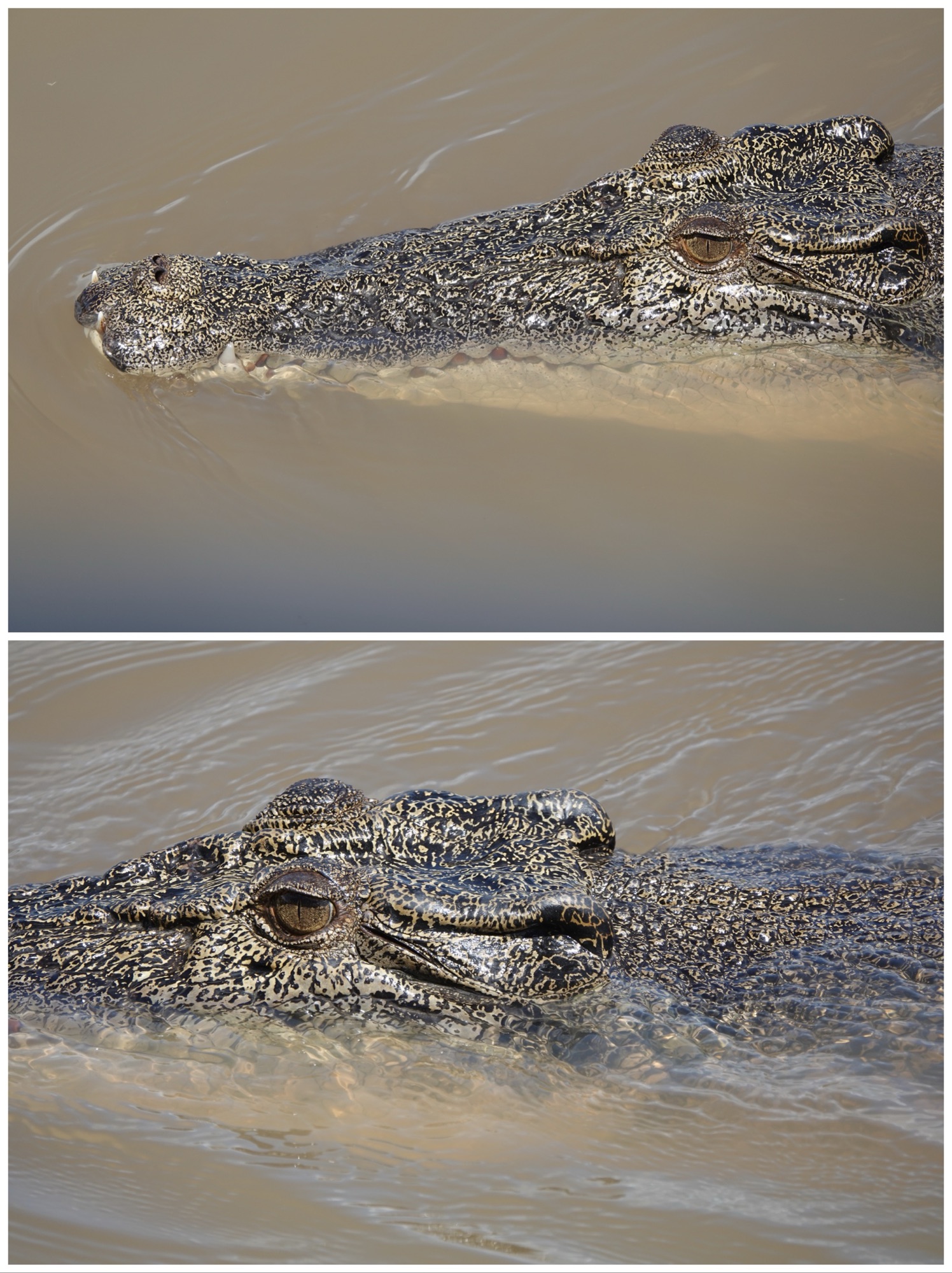 After a quick lunch and much-needed rehydration back on the ship, our afternoon activity was a CROCODILE CRUISE! We headed to the Adelaide River floodplains to witness one of Australia’s great natural curiosities, saltwater crocodiles, which are Earth’s largest living reptile. Although we didn’t need to expend any energy just drifting along in the river, there’s definitely an adrenaline spike involved in seeing up close these apex predators that can live in both marine and fresh water environments and are considered the modern crocodile that is the most dangerous to humans.