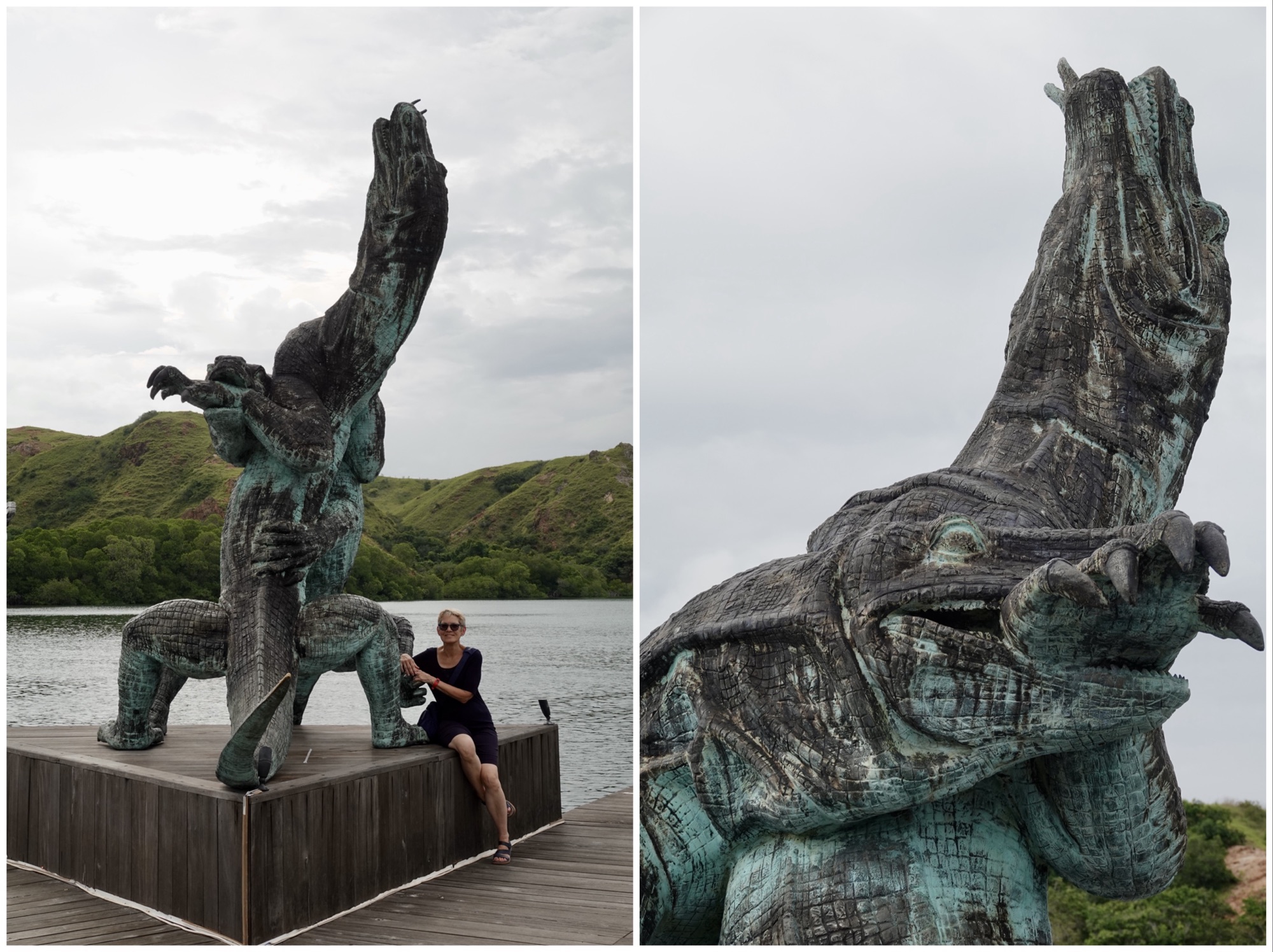 Folks who were on the earlier tours got pictures of active dragons, walking and flicking their tongues, as well as long-tailed macaques, and water buffalo at a watering hole; we got statue-still male Komodos who apparently didn’t know or care about the quality of our photos.