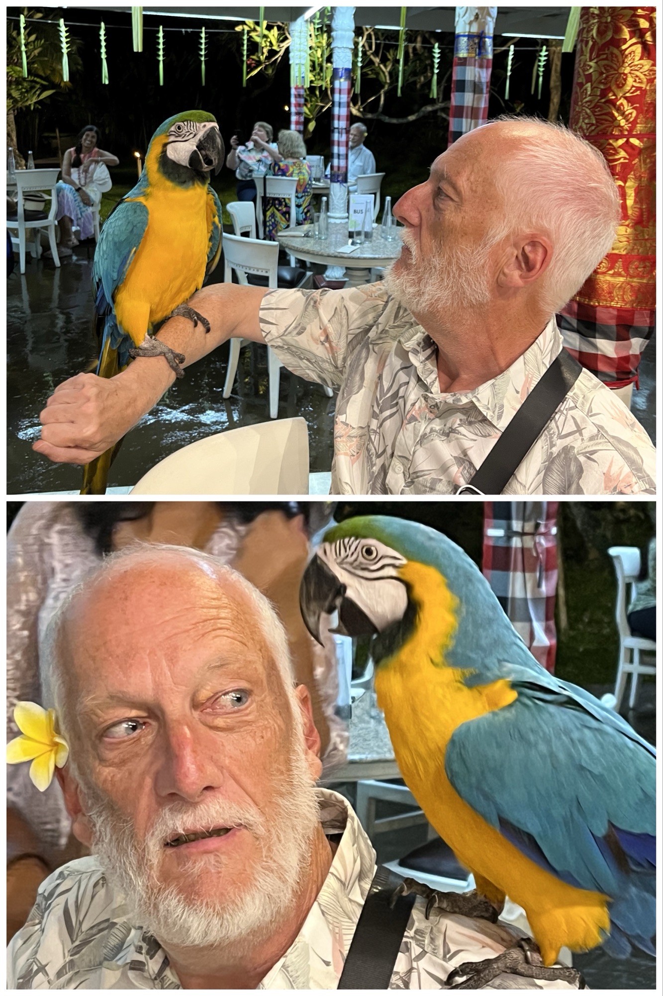 After a VERY quick return to the ship to freshen up, we were off to one of the highlights of our cruise so far: a traditional Balinese al fresco dinner and spectacular ritual Kecak dance show at Bali’s Bird Park.