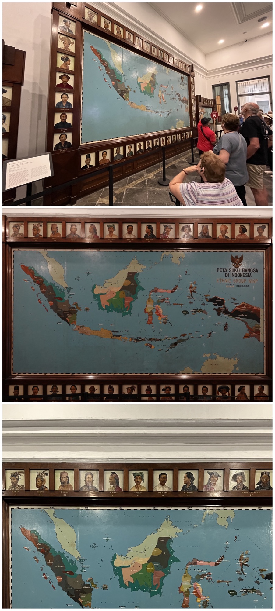 The first exhibit room we visited showcased the multiple ethnicities that comprise Indonesia: 1340 ethnicities and 740 distinct languages in Indonesia, that certainly helped us understand the need for a common Indonesian language.