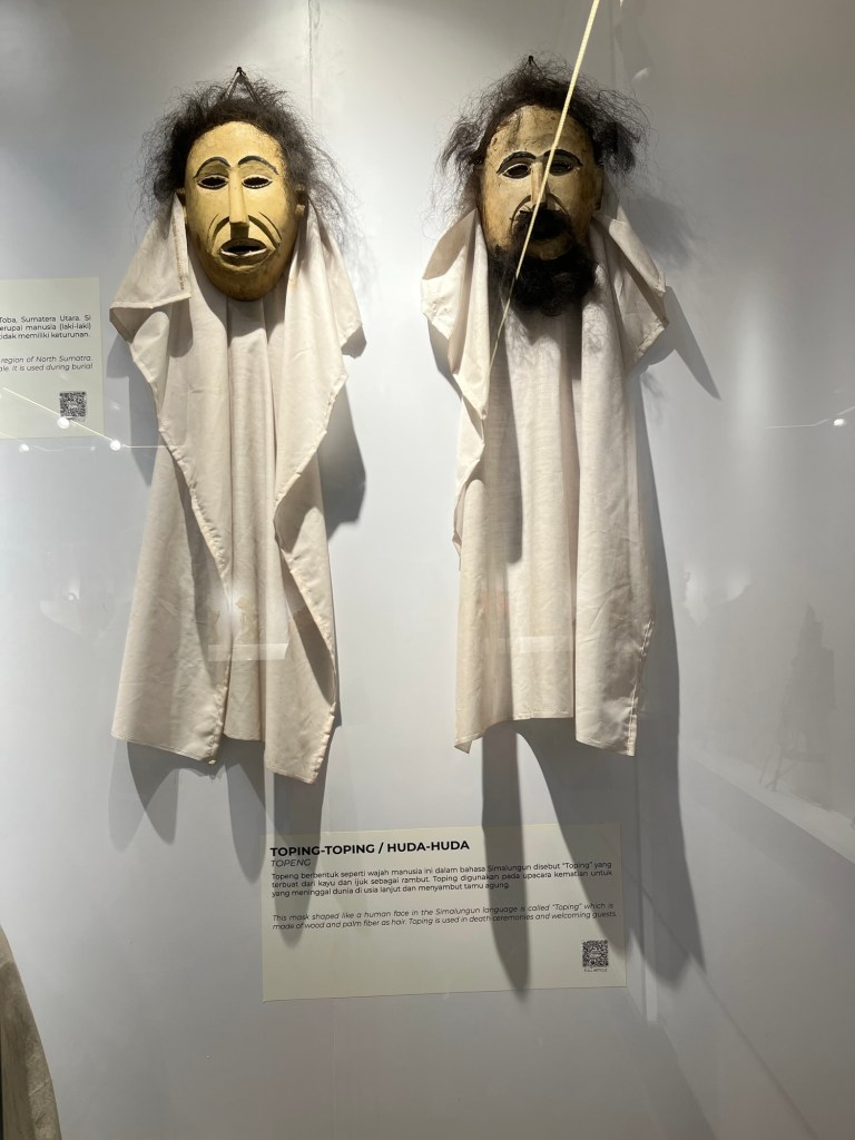 TOPING-TOPING / HUDA-HUDA: these masks shaped like a human faces in the Simalungun language are called “Toping” which is made of wood and palm fiber as hair. Toping is used in death ceremonies and welcoming guests.