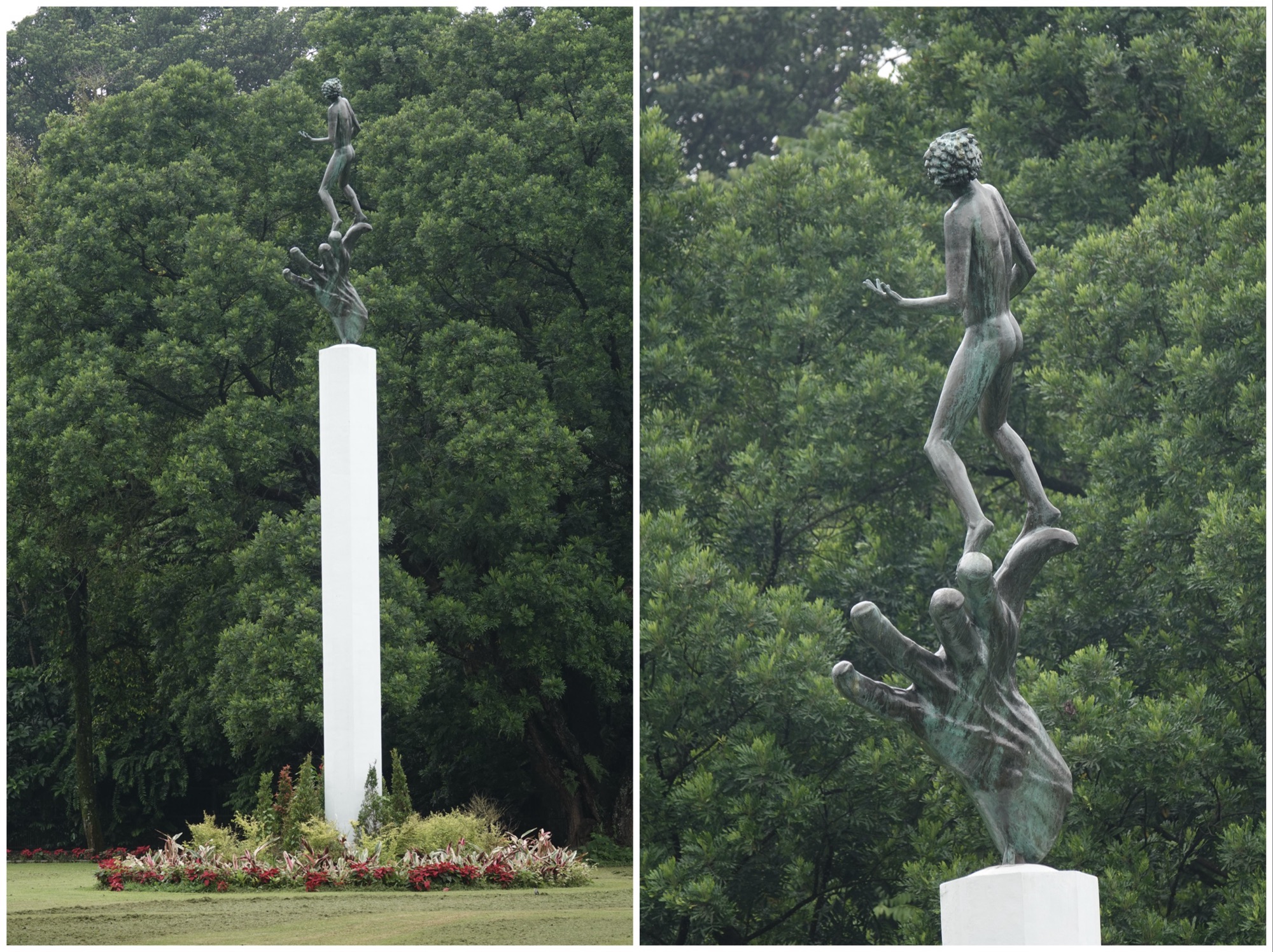 The statue “Hand of God” on the palace lawn was a gift from Sweden.