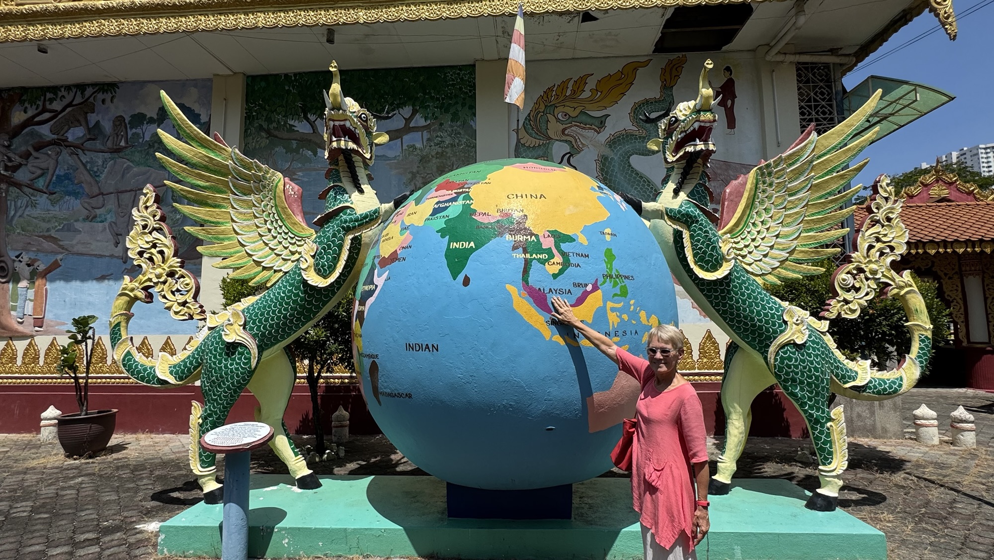 Behind the Burmese temple was a globe highlighting countries in which Buddhism is practiced.