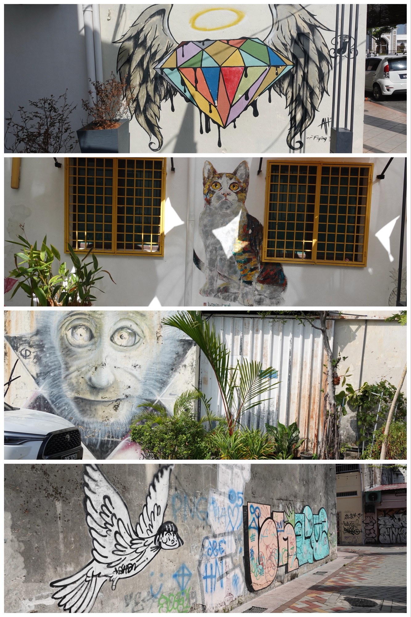 From the jetty area we went in search of Penang’s most well-known street art: “Moto Boy”. (I had already bought tee-shirts with its image at a shop on the jetty for each of our grandsons). The actual motorbike parked in front of the mural is part of the art installation,
