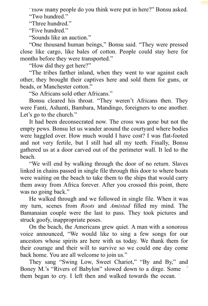 The novel itself was fascinating, and made more-so because I knew we’d be visiting West African countries with histories that mirrored Bamana’s: Portuguese colonization, slavery, revolution, and a rocky path to democracy and reclaimed self-governance.