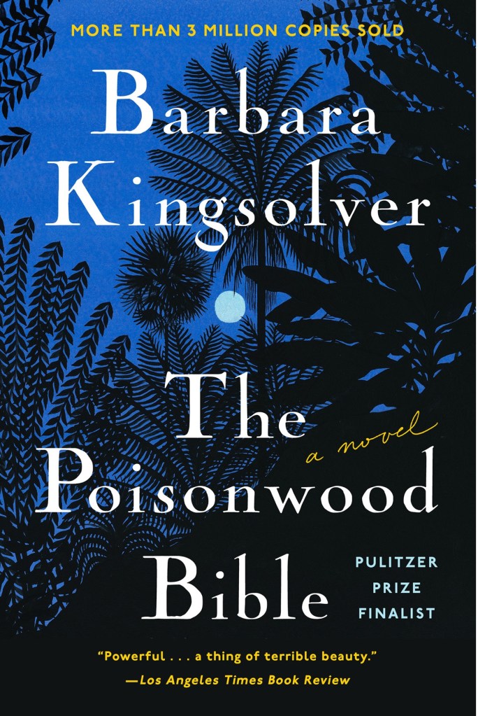 What a book to read on a cruise that will take us around Africa! This was our shipboard book club’s choice: a profoundly disturbing and yet at times profoundly funny story of a misguided Baptist preacher who takes his family to the Congo in 1960, in the midst of that country’s fight for independence from Belgium. The facts of American political interference in Zaire (Congo) Angola and South Africa, Cold War politics, racist attitudes, and the capitalist machinations behind cobalt mining and blood diamonds are deftly interwoven into the narratives of the 5 women – a wife and 4 daughters – of the preacher whose belief in God makes him blind to humanity. It’s an uncomfortable read for many, but absolutely worthwhile. I highly recommend it!