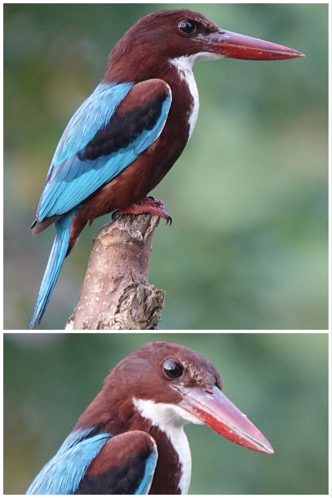 Ted found something much more interesting than either rubber or tea: an absolutely gorgeously coloured White-Throated Kingfisher. Both of us were astounded that that was the best name an ornithologist could come up with for this bird.
