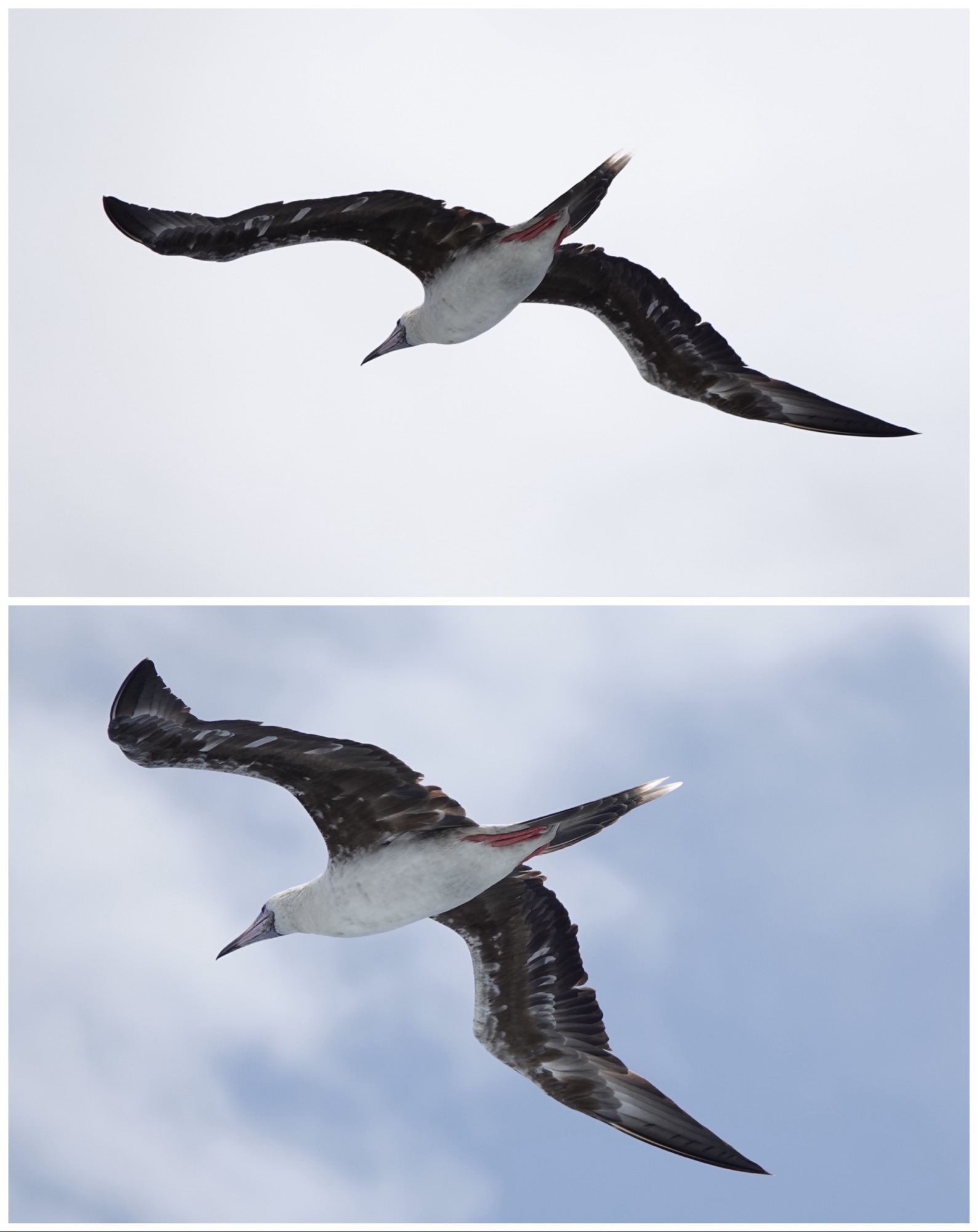 This was one of those times that I really appreciated that all of Viking’s ocean ship cabins – even ours which is the smallest configuration – have balconies. I could simply sit outside sipping my tea and just watch the red-footed boobies that are following our ship.