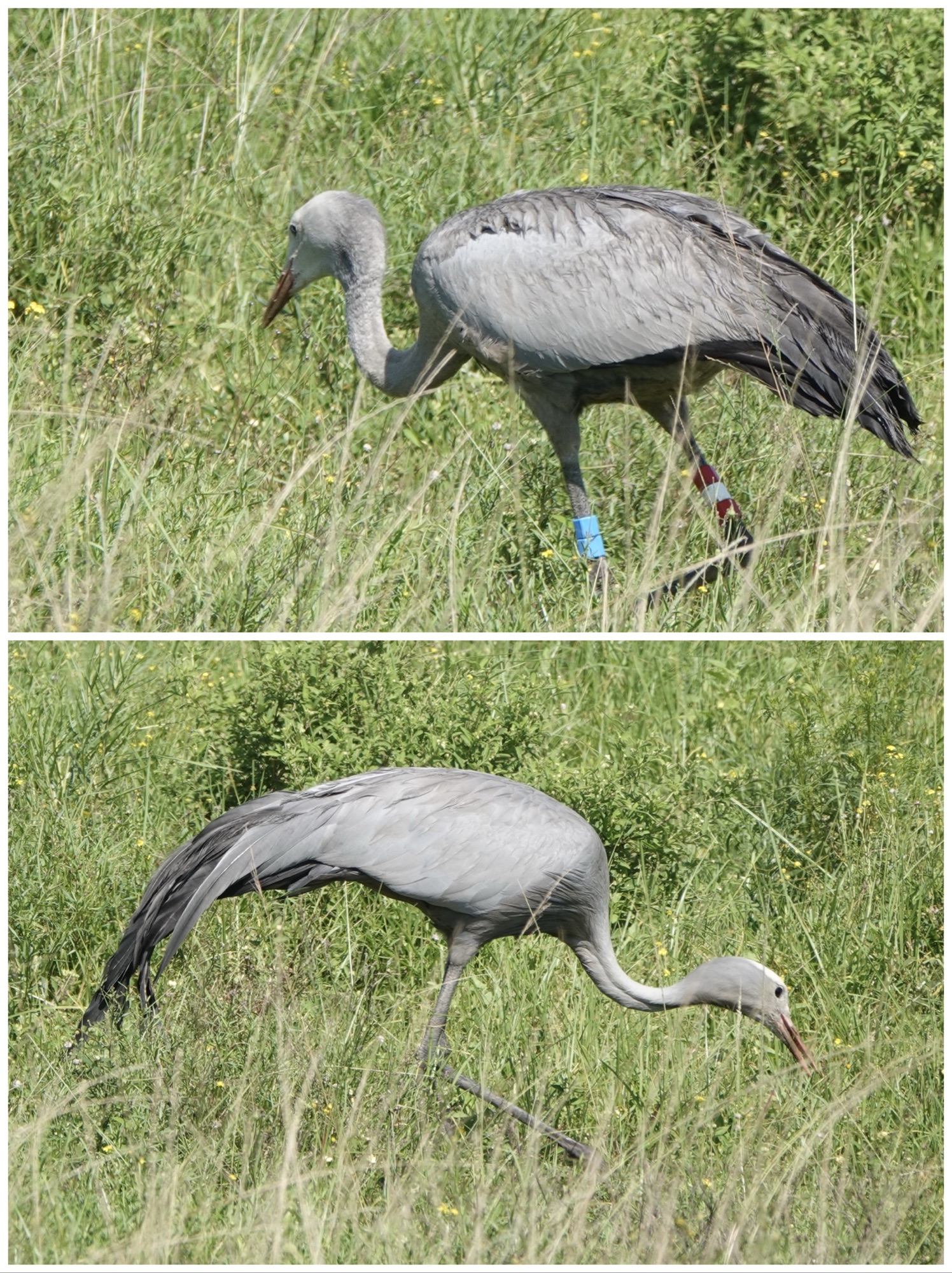 10:28 a.m. A pair of blue cranes (also called the Stanley crane or paradise crane), South Africa’s national bird.