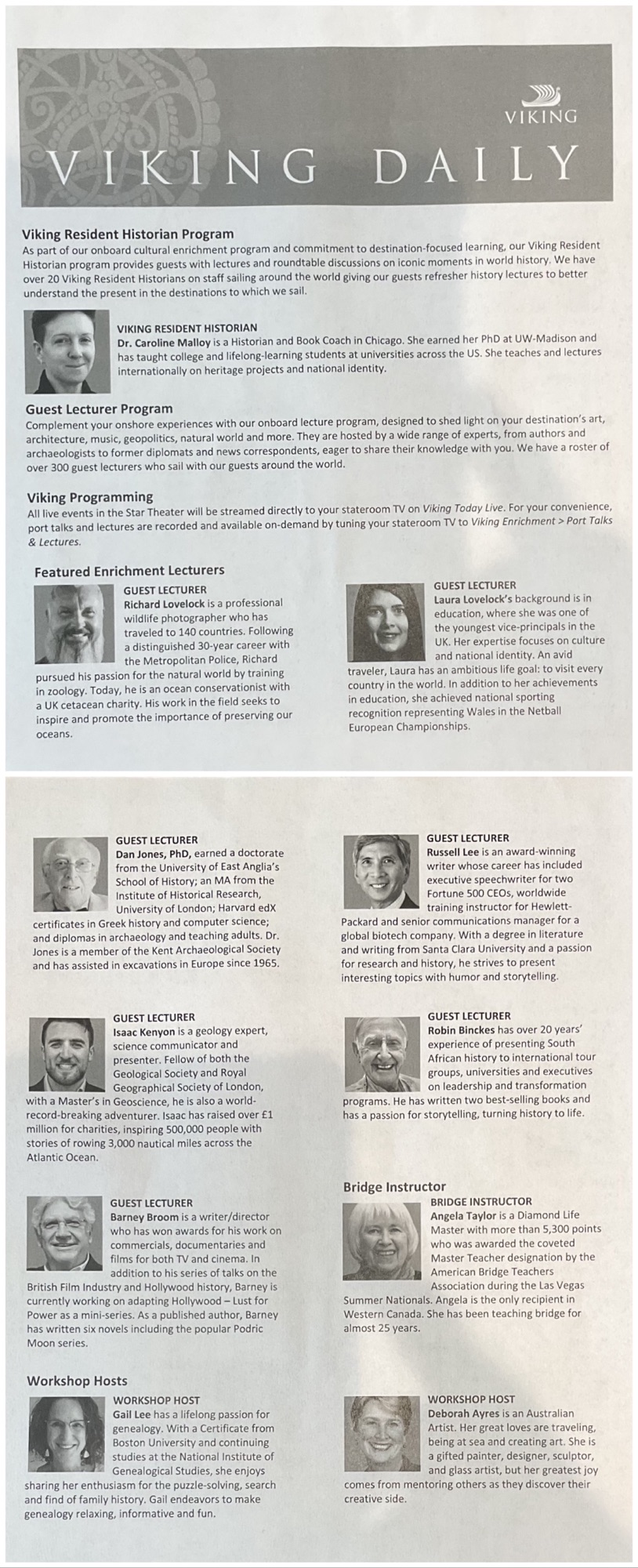 Lectures, lectures, lectures. Viking’s roster of onboard experts for this Cape Town to London leg of the cruise is truly amazing.