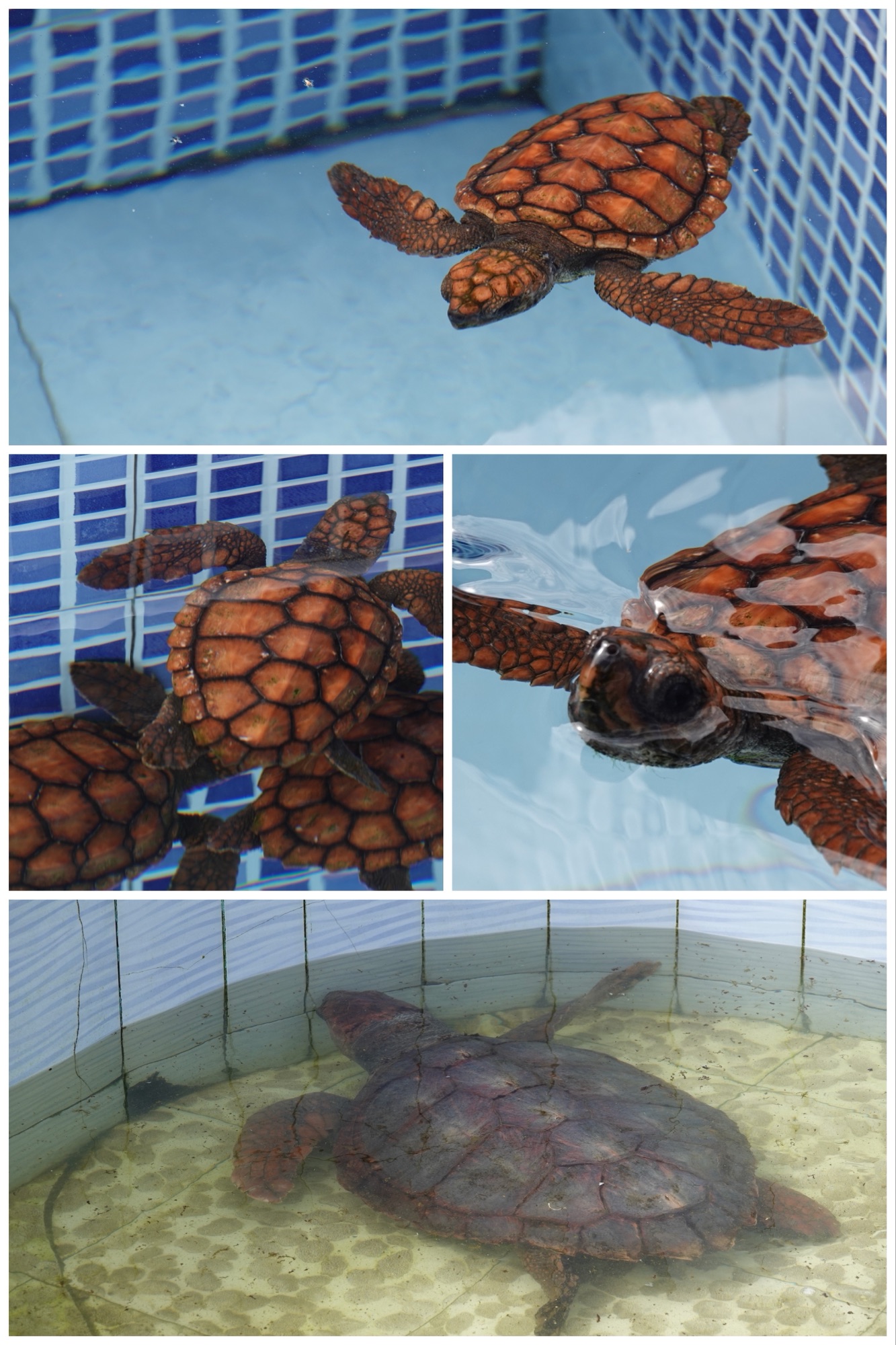Green turtles are indigenous here but endangered, and protected. The two large turtles at the facility were about 26 years old; they’d been injured (likely caught in fishing nets, since fishing is the main industry here) and were recuperating. We were also told that dogs are a problem; people abandon their animals, which then end up foraging on the beaches. The wee turtles that we were allowed to hold were only 6 months old, and almost ready to be released back into the ocean.