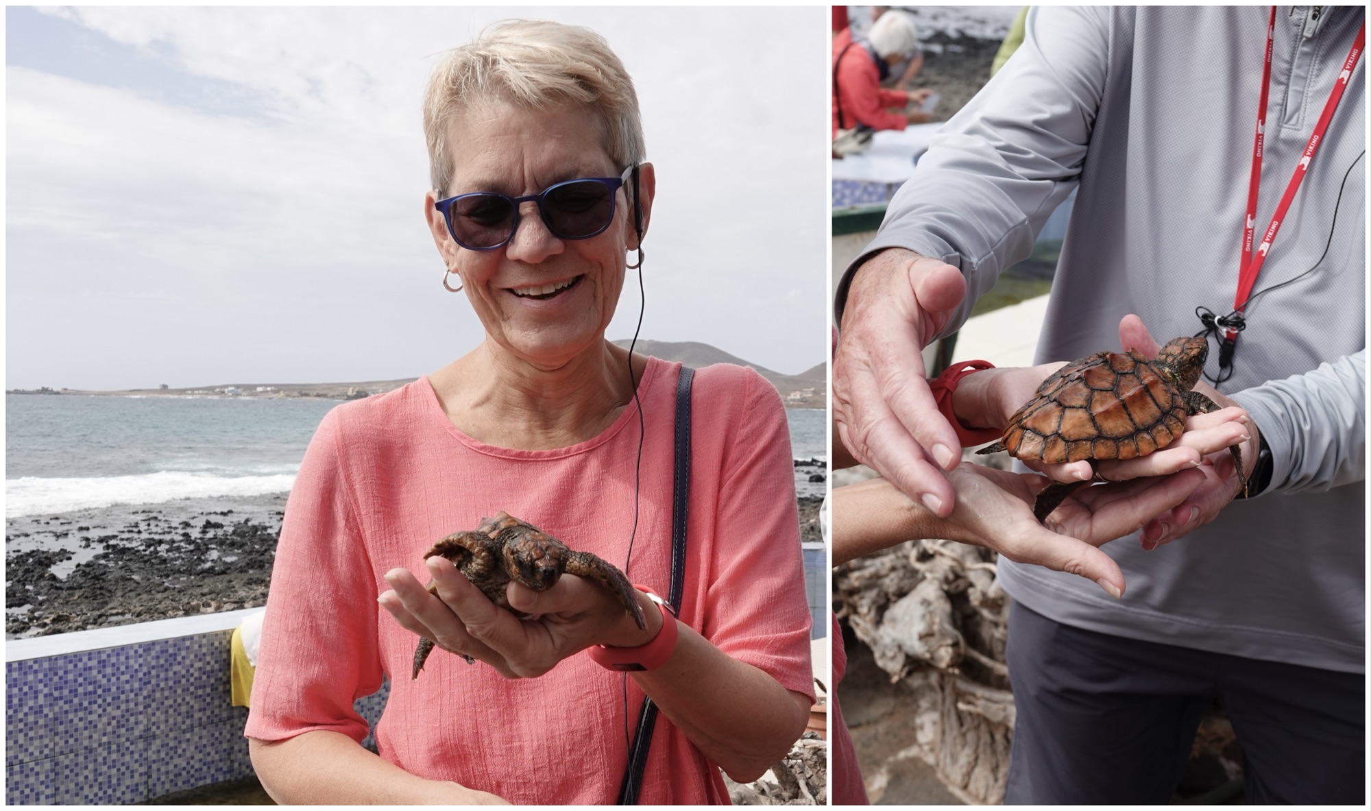 Our first stop outside of the city of Mindelo was at a privately owned turtle rehabilitation centre. The beach here is rocky and wild. When we arrived, the owner was just scrubbing algae from the tiled walls of the larger turtles’ pool.
