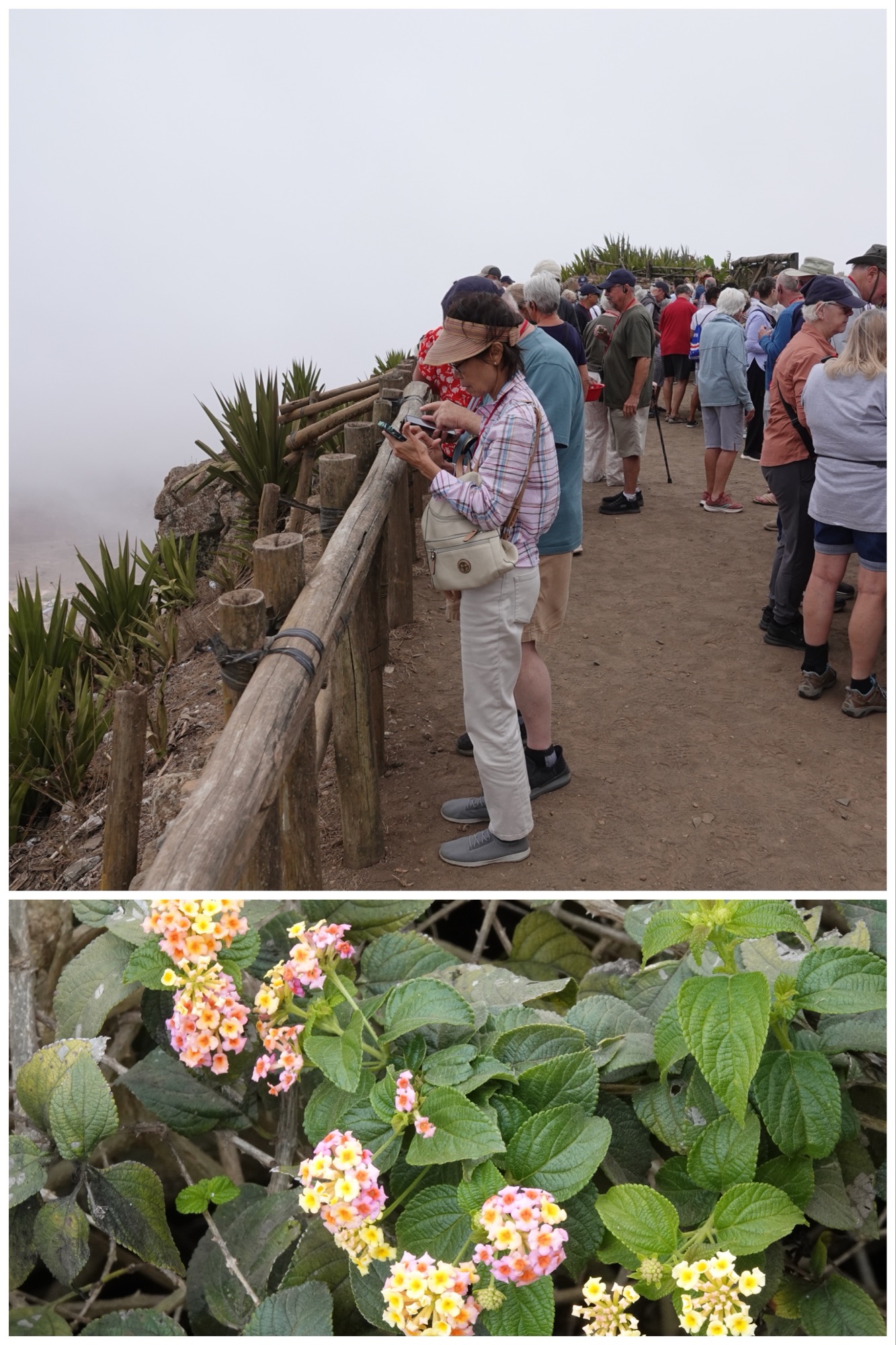 This mountain defines the island’s topography. Its peak is made invisible by clouds when trying to see it from the shore; at the top, those same clouds make the view hazy.
