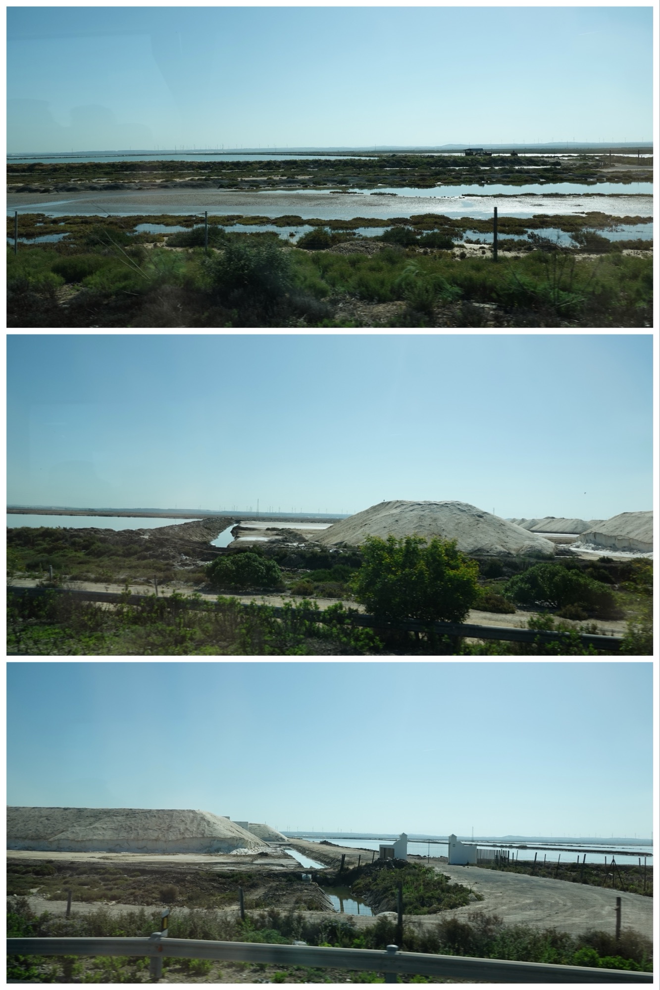 From the port in Cádiz to reach Jerez we drove along an isthmus, with the Bay of Cádiz on one side and the Atlantic Ocean on the other. This is an area of sea salt farming; we saw drying pools and huge piles of salt.