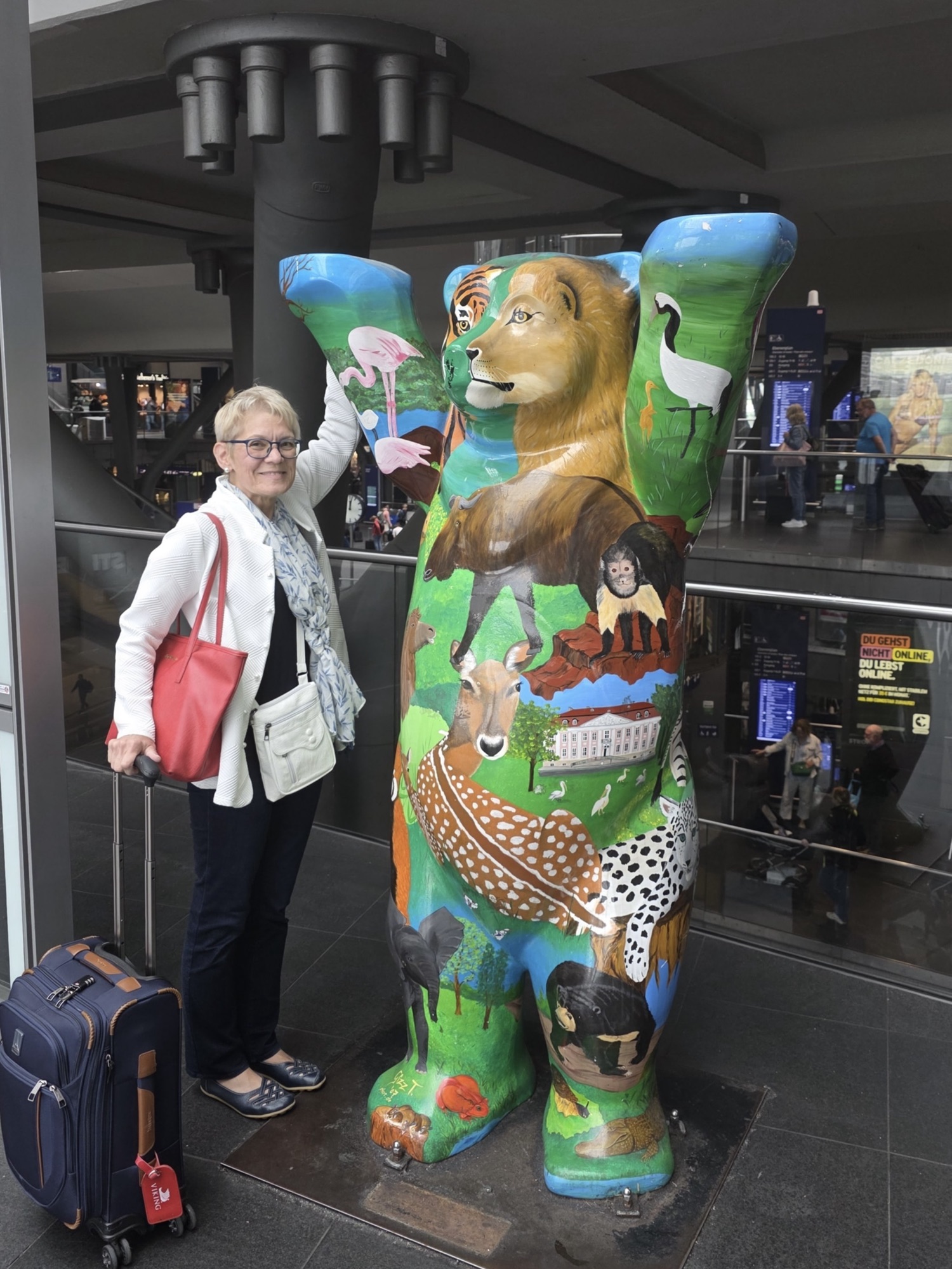 From my cousin’s town to Berlin, I had pre-booked an ICE direct train, and reserved front-facing seats in second class in a “quiet” car. Distance Verden to Berlin: 282km/175miles/3-3.5 hours. Cost for two: €116. A few days before our scheduled trip, I got a notice both via email and in the DeutscheBahn (DB) app that our train had bern cancelled. In the app I was easily able to choose an alternate train, although it required a quick transfer in Hannover – simply changing over one track to a waiting train. Even though I had purchased an economy ticket which normally allows no changes, since DB cancelled our train I could choose ANY available train, and even change the date if necessary. Son #2 was quite impressed with the journey, reaching speeds of 200 km per hour.