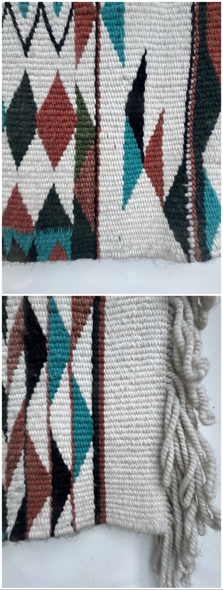 Today was an exception. Today it was simply “there”: five pieces of recent Musqueam weaving.