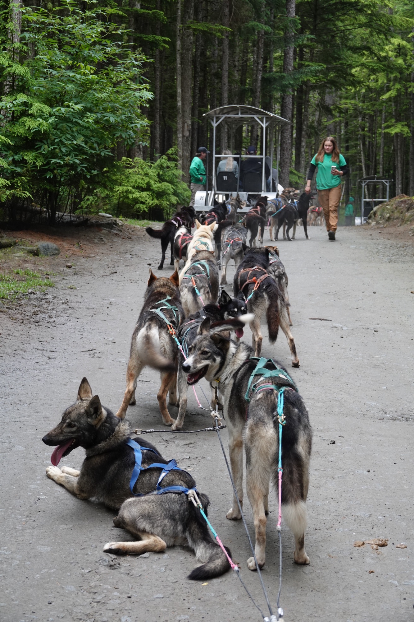 The dogs run year-round. That’s not just to keep them in practice, but because Alaskan huskies are bred to run and pull. Their owner described the breed as “specialized mutts”, whose genetic makeup includes not just Siberian husky (the iconic blue-eyed white and grey breed) but up to 18 other breeds, bred for speed and endurance in sled racing. The result is a dog that is completely unsuited to being a house pet – unless their owner is prepared to run 10km a day with them. Their temperament was described to us as “intense” and “driven” . Talia cautioned that without that high level of exercise they simply “eat up the furniture”. Yikes.