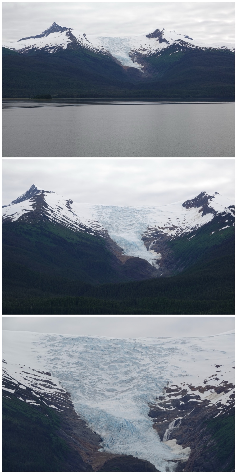 Yesterday we were in Endicott Arm, a 30-mile long fjord located in southeastern Alaska, within the Tracy Arm-Fords Terror Wilderness Area. It’s known for its stunning scenery, including towering granite cliffs, waterfalls, and the magnificent Dawes Glacier at its head.