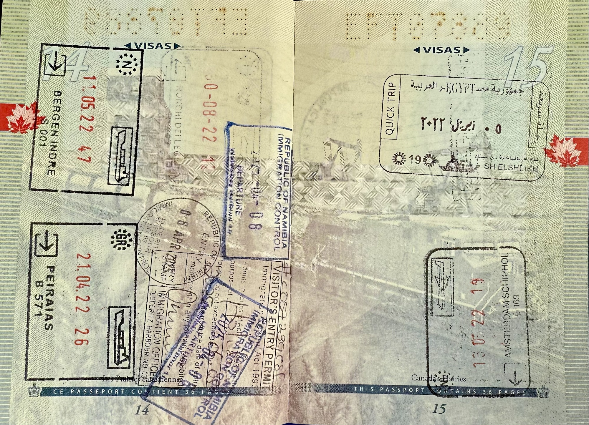 Looking back through all the stamps has brought back wonderful memories. Interestingly, they are not in chronological order. I’ve always wondered, and still don’t know, why or how customs officers choose on which page they put their stamps.