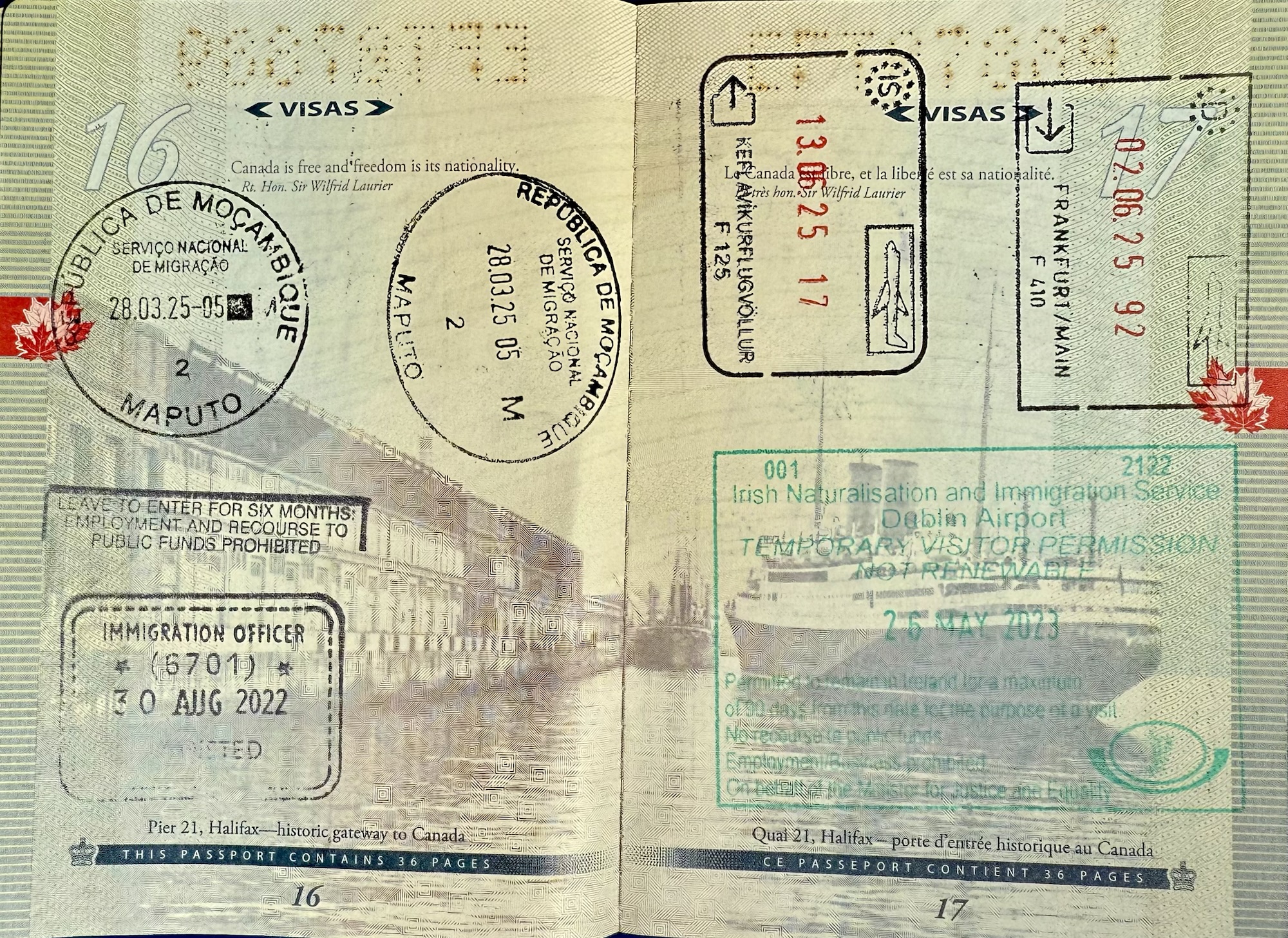 Page 17: entering the Schengen Zone via Frankfurt airport 02 June 2025; exiting the Zone via Keflavik airport in Iceland 13 June 2025, book-ending my trip to Germany with son #2; temporary Irish visitor visa 26 May 2023, beginning our land tour of Ireland.