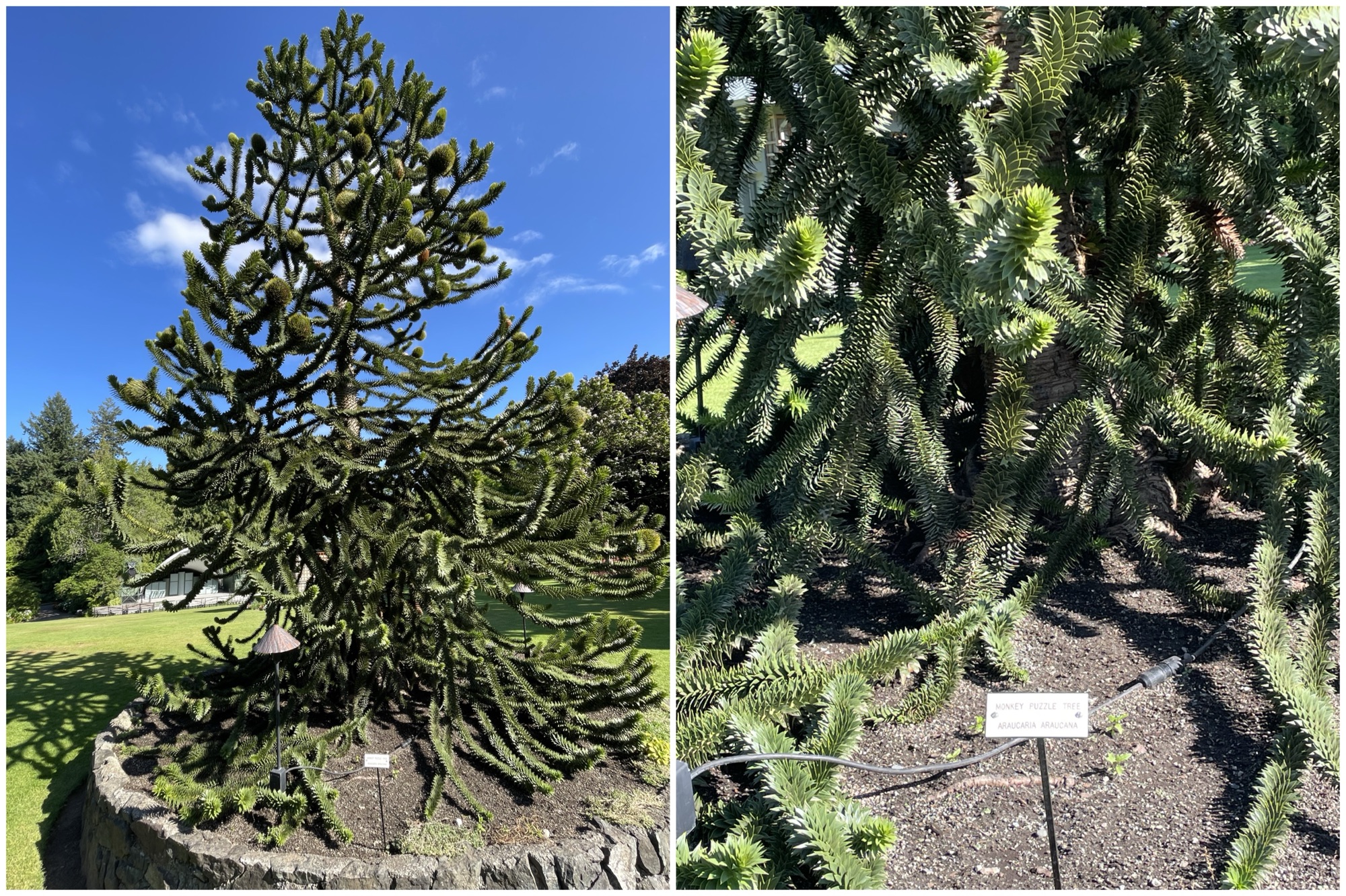 We were surprised to see a pair of large (about 10m/33ft tall) monkey puzzle trees in the gardens!