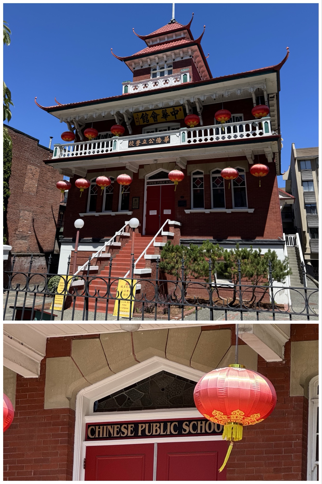 I was enchanted by one of the lovely murals wrapped into a corner, though, and by the Chinese school building (still in operation as a K-12 school and for cultural classes)
