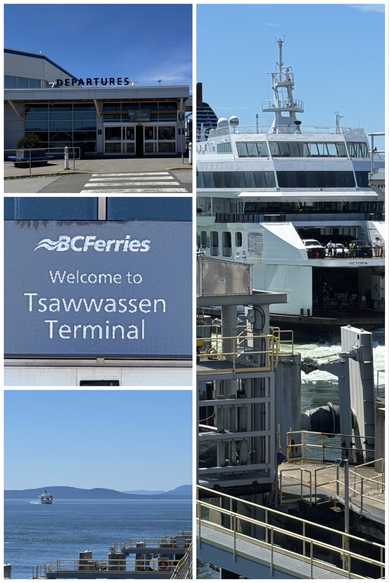 Pat was coming by car from Washington, so I took the Skytrain to the Tsawwassen Ferry Terminal and we met on board the ferry. It’s a lovely crossing to the island that I’ve done a couple of times, both with Ted and with my best friend Barbie (Episode 432).