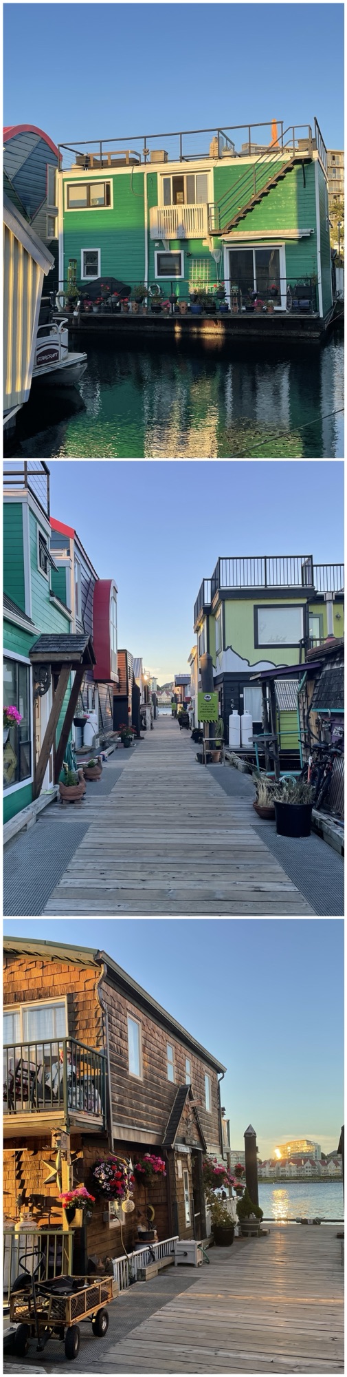 After dinner we had time for a stroll through nearby Fisherman’s Wharf, Victoria’s waterfront community of permanently moored boathouses, and back along the harbour to see the lights turn on on the Legislature.
