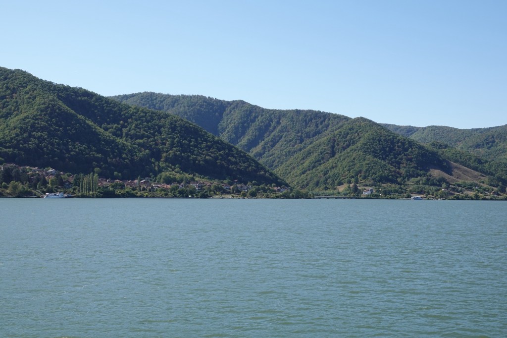 Very near King Decebal’s face we passed the Mraconia (“secret place”) Monastery in the narrowest part of the Danube, where it is just 150m (approx 490 ft) wide. It is also at its deepest here, up to 50m deep. Here the Danube flows between the Carpathian and Balkan mountain ranges.