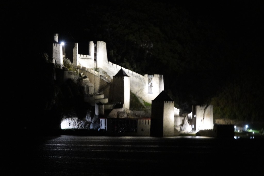 (3) The Golubac Fortress, which we didn’t actually pass until around 10 p.m. as we were exiting the Iron Gate stretch of the river, by which time it was spectacularly lit.