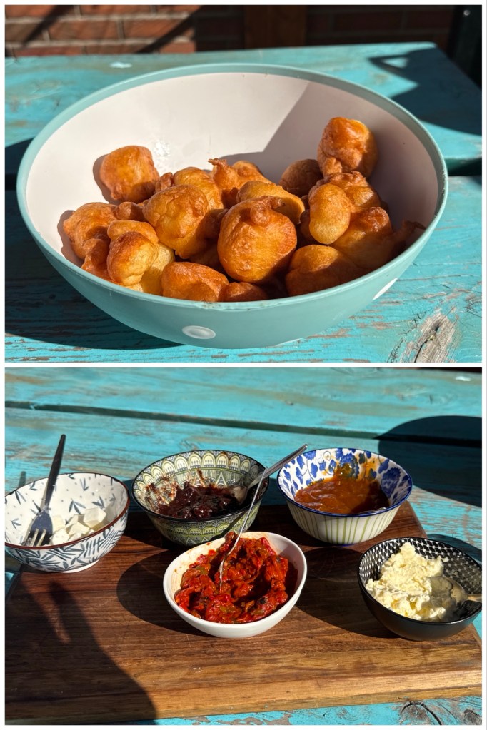 Then it was time to let the dough rise around 30 minutes in the sunshine, until doubled. Today’s 30°C/85°F outdoor temperature created the perfect natural proofing drawer!