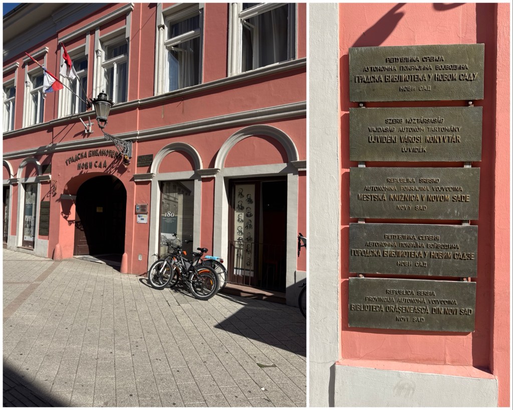 The sign on the library is in Serbian Cyrillic, Hungarian, Latinate, an unfamiliar (to us) language called Ruthenian, and SerboCroatian. I may have the order mixed up, since only the Hungarian looked familiar.
