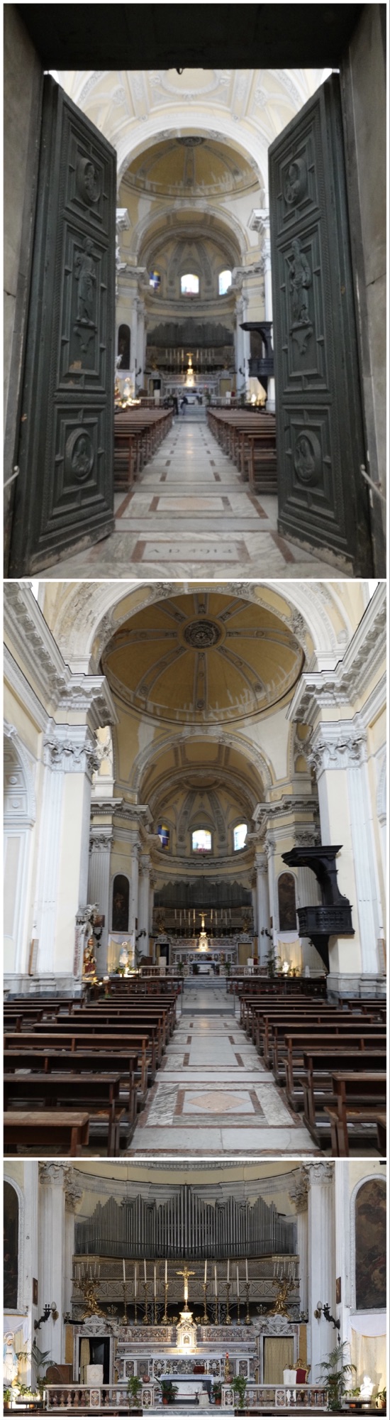 About an hour outside of Naples is the newer Royal Palace, which is the Italian equivalent of Versailles, with multicoloured marble and ornate decoration, but I think the white on white here is elegant and particularly effective.