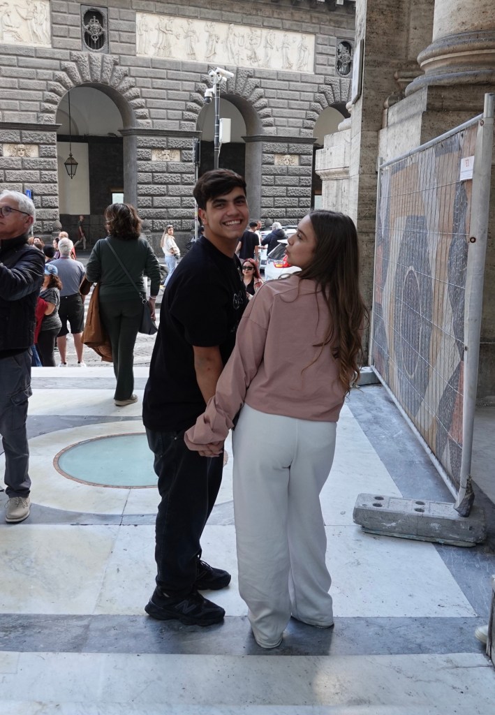 Our guide began our walking tour by describing Naples as a lasagna, layers upon layers of history, beginning with the Greek settlement of “neo polis” – the new city – and then layered with Roman, Christian, medieval, and baroque periods before modern times, reflecting Greek, Roman, French, Spanish, and eventually Neapolitan Italian occupations.