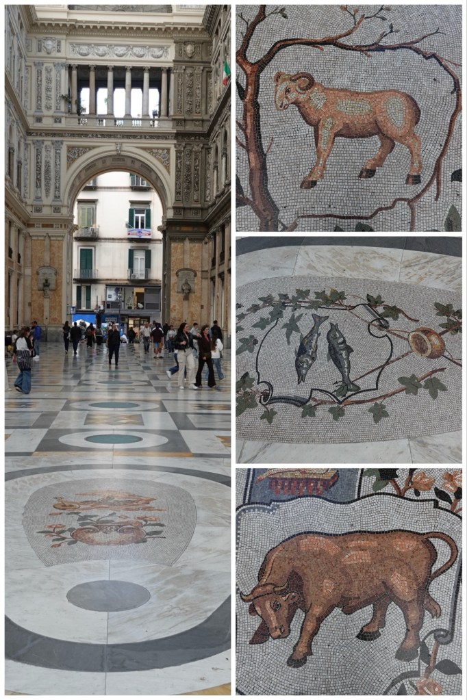 The arcade was by far the most beautiful building we saw in Naples, even considering the fact that it now hosts multinational chain stores, souvenir shops, and even the ubiquitous McDonald’s. Whether we looked up at the ironwork and carved marble, or down at the marble mosaic floors depicting the astrological signs, it truly was a spectacular place.