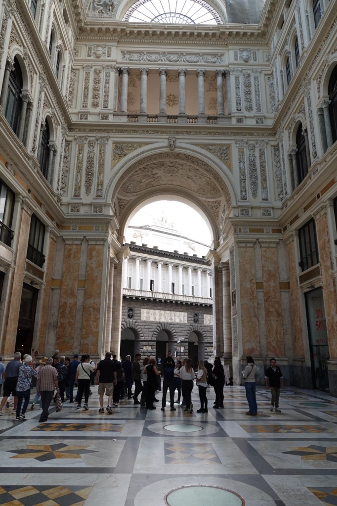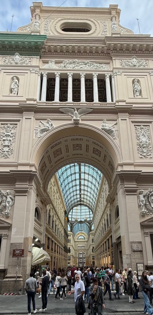 On the opposite side of the street, dating to 1890, is the gorgeous arcade, which was built as a huge shopping mall, the Galleria di Umberto Primo, named after Umberto the first Savoy king of the unified Italy. We had a chance to peek inside later.