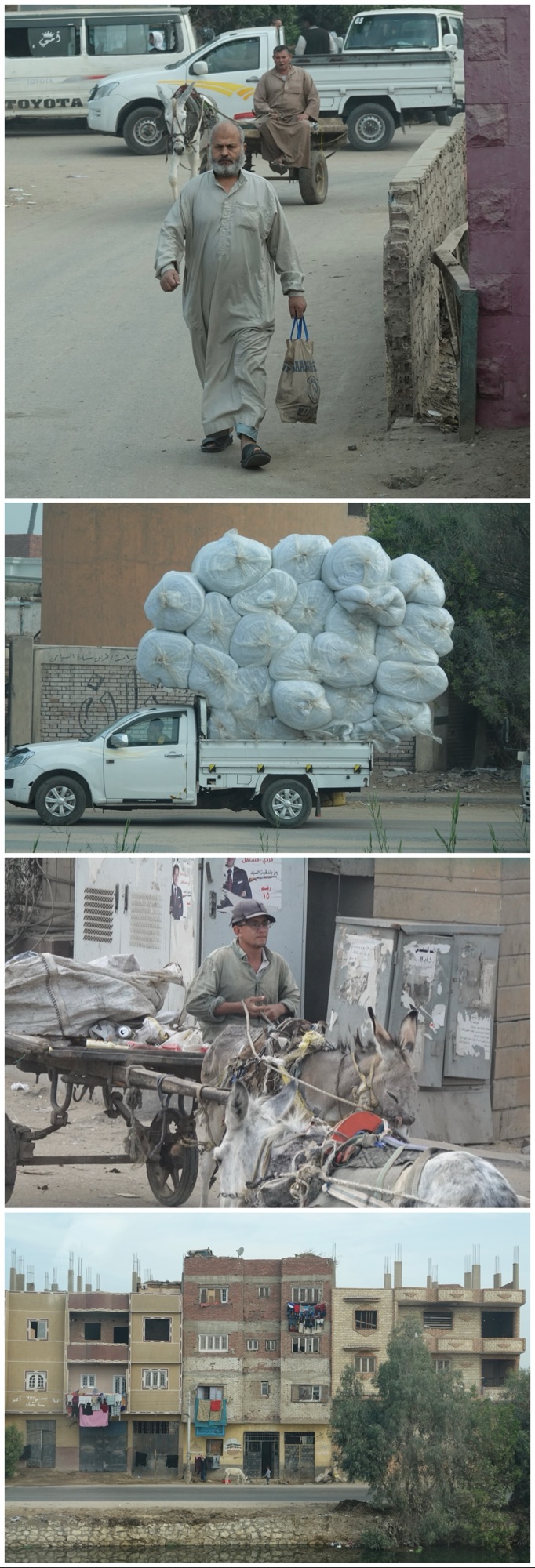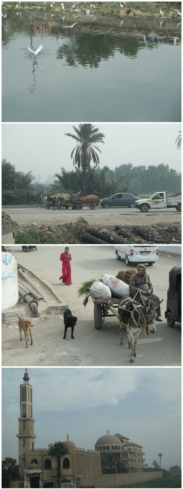 We had to drive about 45 minutes to reach the Sakkara complex, taking a route along one of the irrigation canals built alongside the Nile. This landscape was what Ted and I remembered from our last trip here: the contrast between downtown’s hotels and high-end shopping district with the arras of tiny family farms. If anything, the garbage in the irrigation canals has gotten worse in the past 4 years; the people and animals look about the same.