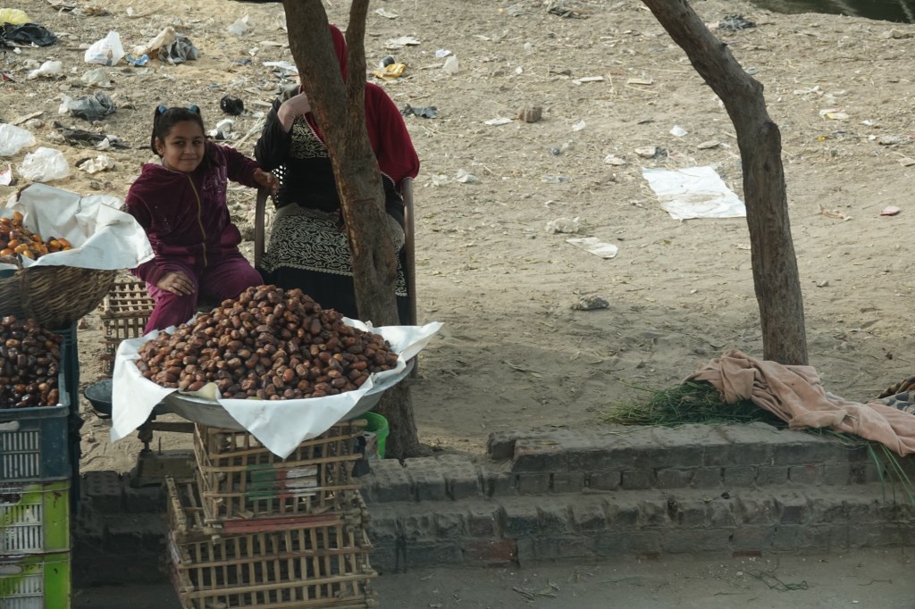The market paled in comparison to the markets of Marrakech and Istanbul, and the food at the restaurant, while typically Egyptian, was nothing special: hummus, baba ganoush, grilled eggplant, flatbread, falafel, rice, stewed okra and tomatoes, phyllo pastry stuffed with ground meat, stewed beef, and rice pudding were all no better than the food we’d been served at our included lunch – and while the venue was pretty, the service was rushed and lacklustre.
