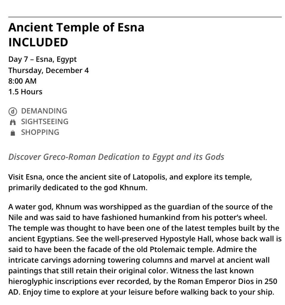 The temple of Esna is a hidden gem! Of course, the bucket list locations of Egypt are a must-see, but this temple is the sort of lesser-known site I’d choose to visit. Although it is the newest of the Egyptian temples, it is still plenty old, and the carvings and colors are spectacular! I’ve always been fascinated by ancient Egypt, and if we were both ten years younger, I’d be quite tempted by this cruise. Alas, age catches up with us all, so I’m enjoying Egypt through your blog posts and photography. Thank you!