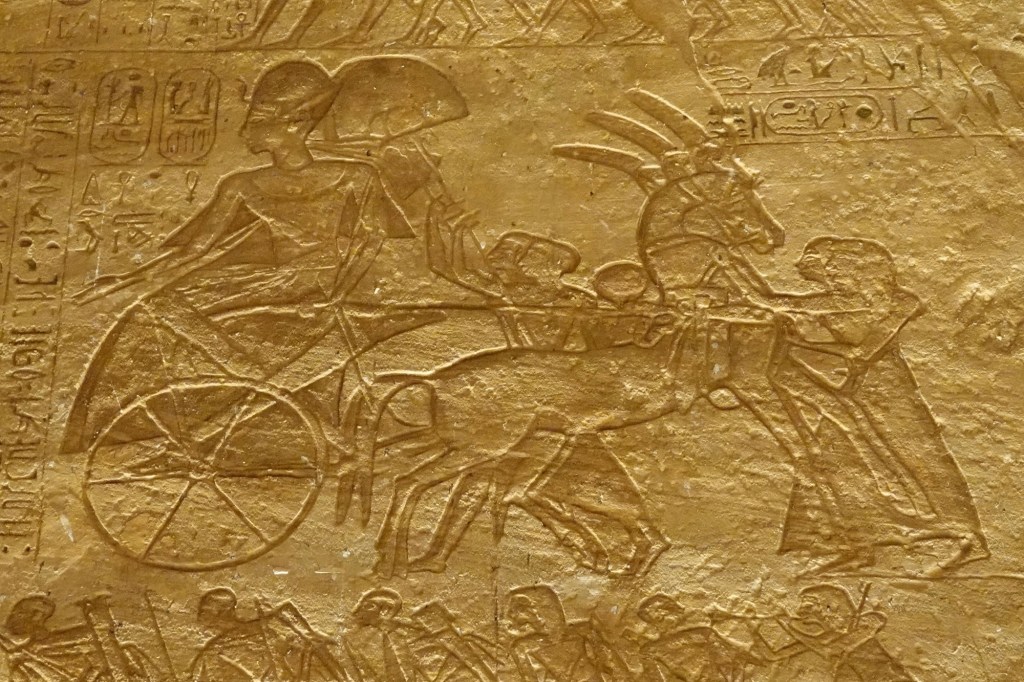 Great speed is represented in the final carving by doubling arms and legs on Rameses II and his horse. Look carefully at Ted’s photo below to see the effect the carvers created.
