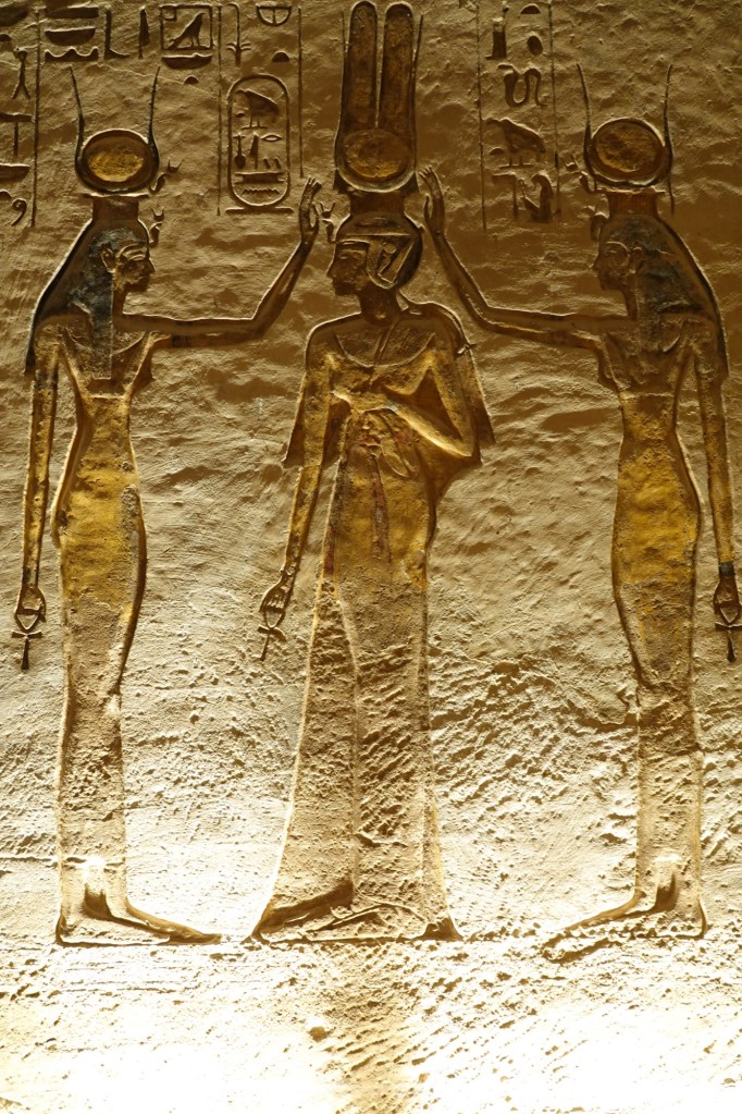 The second smaller temple at Abu Simbel is dedicated to the worship of Rameses II’s first and favourite wife Nefertari, conflated with Hathor – the goddess of love, beauty, music, dance, fertility, joy, and motherhood.