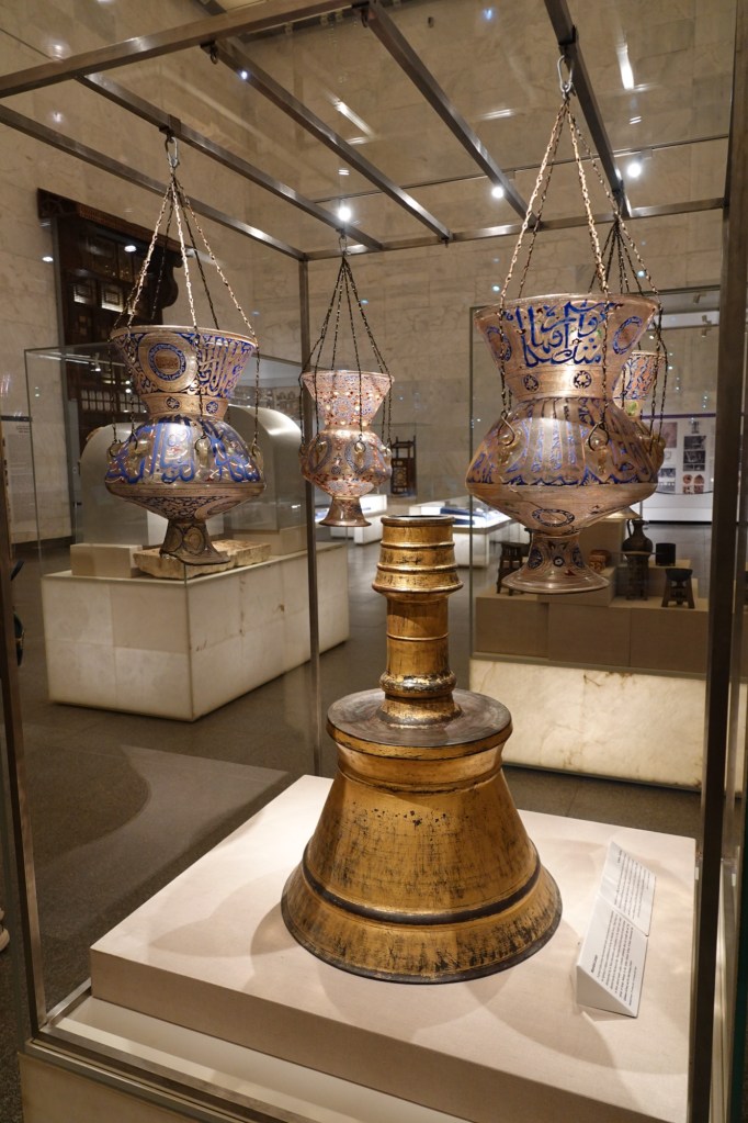 A group of glass lamps decorated with multi-colored enamel, which were designated for lighting in religious establishments during the Mamluk Period. These lamps are distinguished by its floral decorations and inscriptions in the Naskh script, which depend mostly on the Ayat al-Nur. These lamps were lit by means of a wick of cotton or linen placed inside a glass container containing clean oil, usually olive oil. This group of lamps belongs to the Sultan Hassan School, Al-Nasir Muhammad Ibn Calawun School, and Al-Zahir Barqua School.