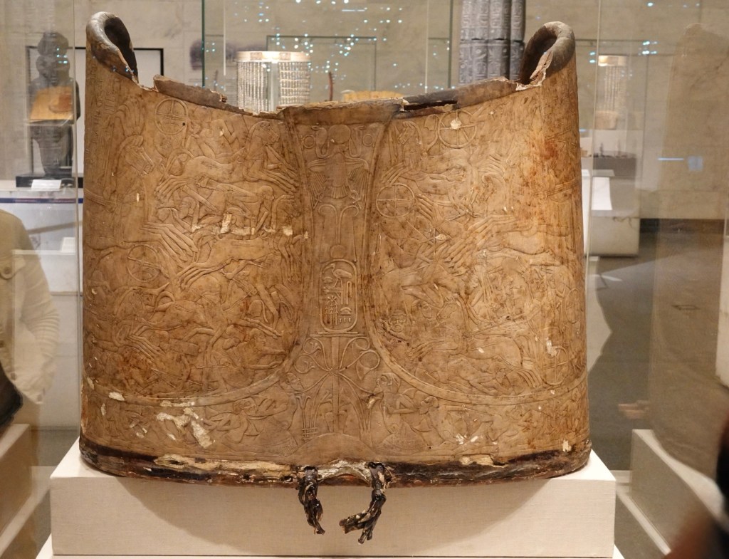 What would have been a fairly non-descript item to us (by comparison to statues and gleaming gold) was an item Walid described as one of the most important artefacts of the museum: a rare intact chariot shield dating to about 1200 BCE.