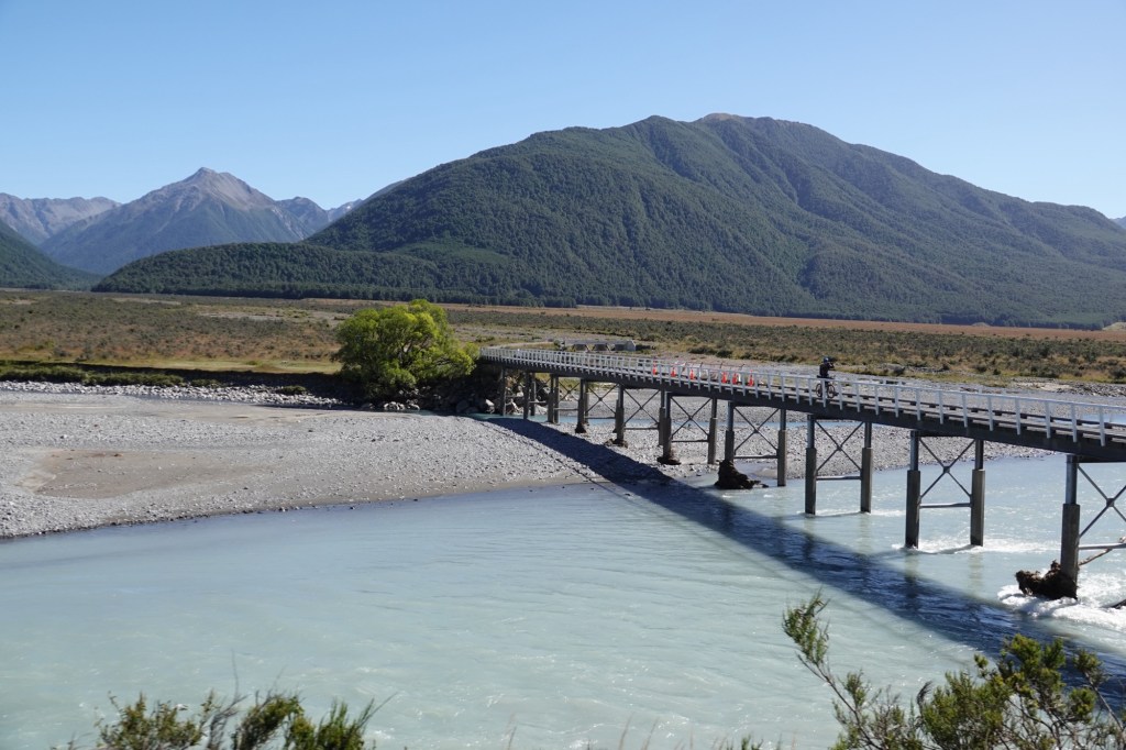Mount White single lane bridge (of which there are many here) over the Waimakiriri River.