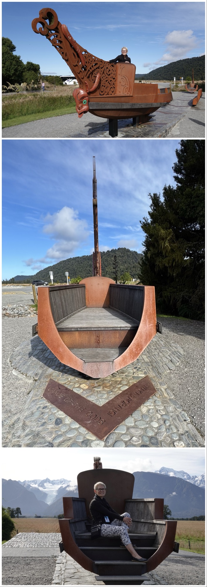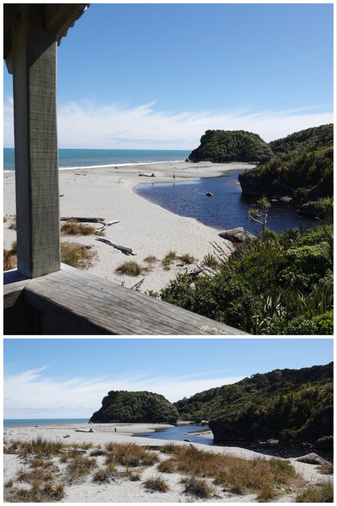 The lookout point also featured a Māori waka, and examples of the varied stages of erosion of its exposed schist rock (metamorphosed greywacke) as it journeys from the mountains to Te Tai o Poutini/the Tasman Sea.