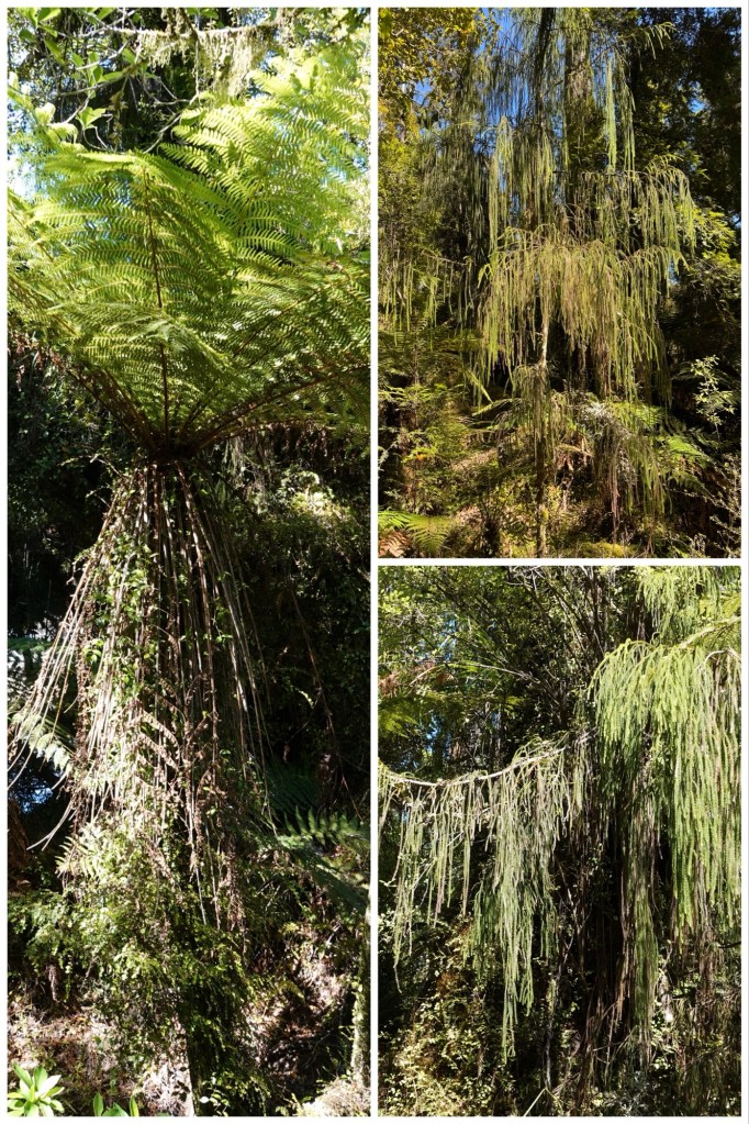 Right: 2 images of rimu, an endemic NZ evergreen with fine green foliage reminiscent of seaweed.