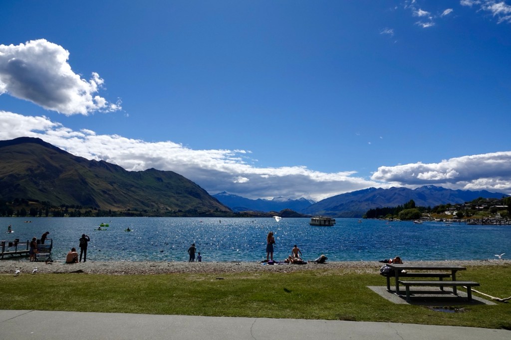 Wānaka is busy year-round. In the summer (now) it is a beach town with a lovely waterfront. In the winter, it is a ski town.