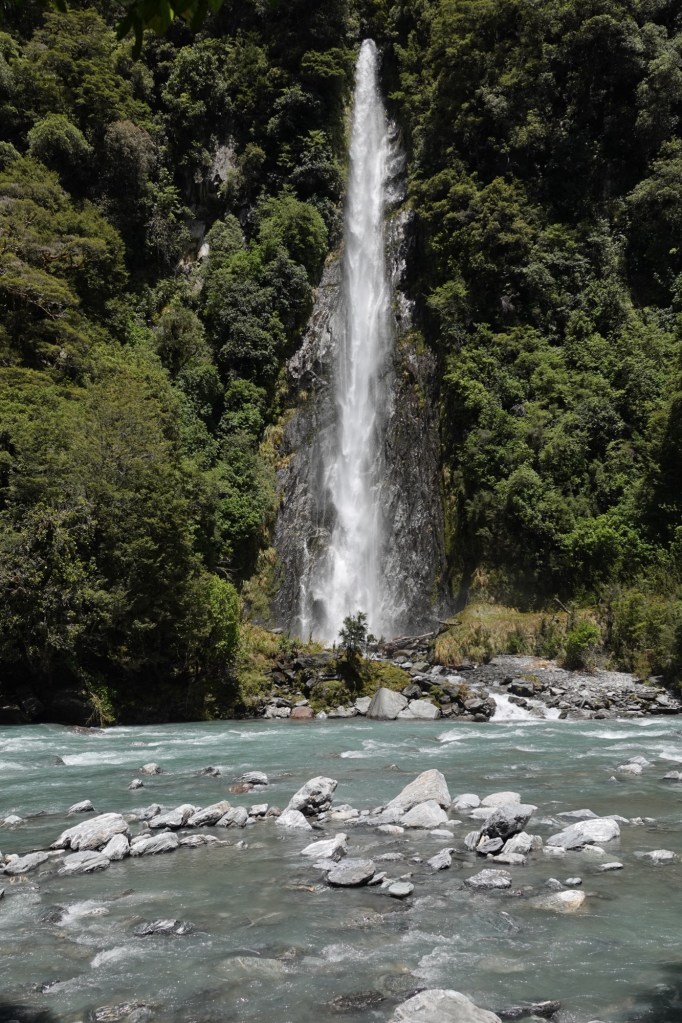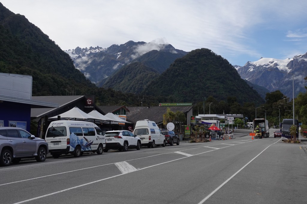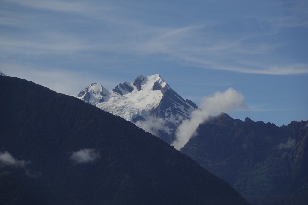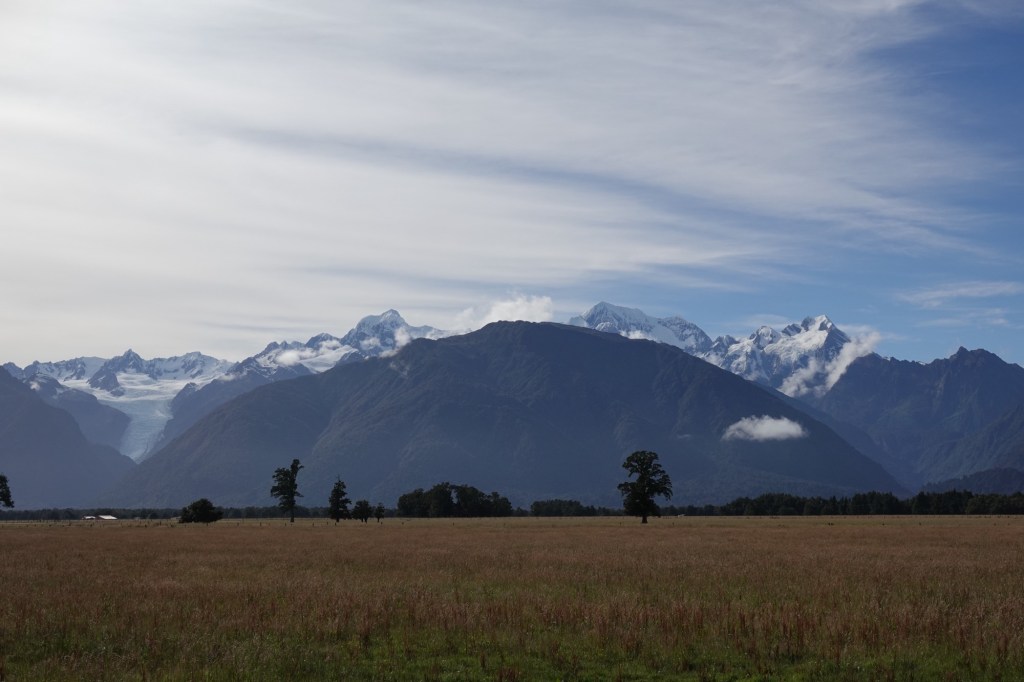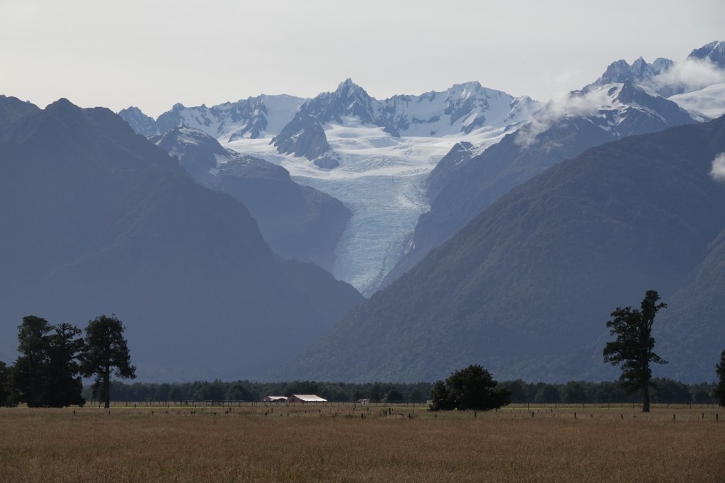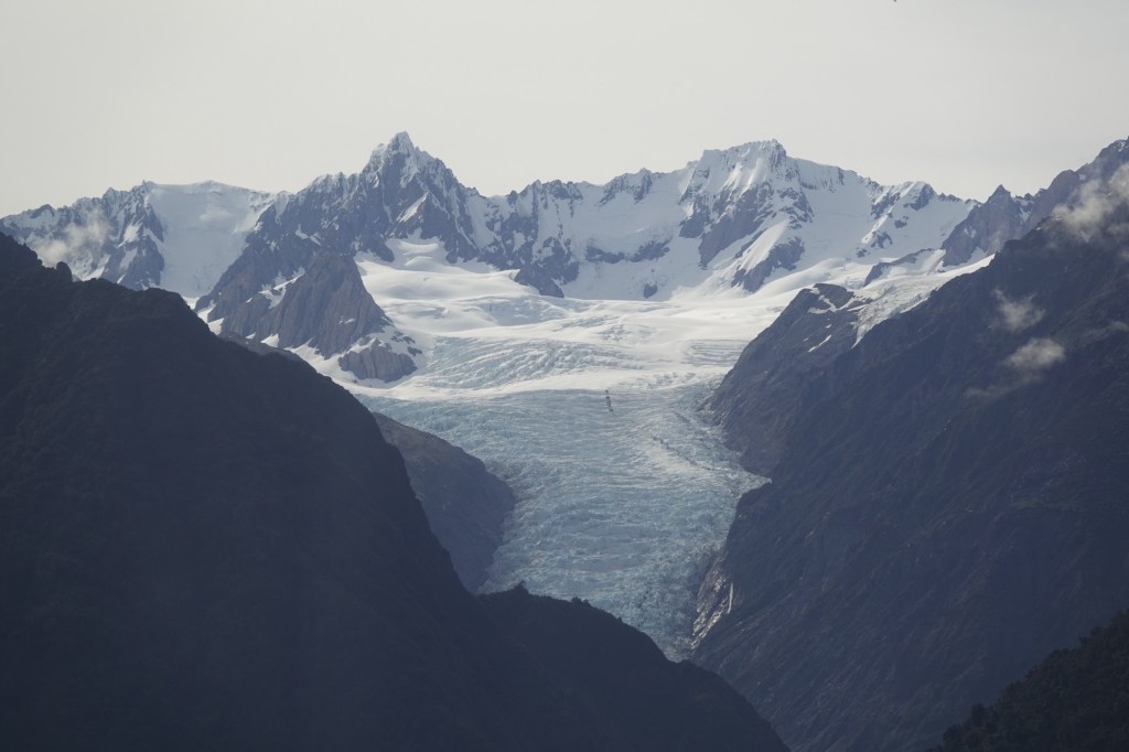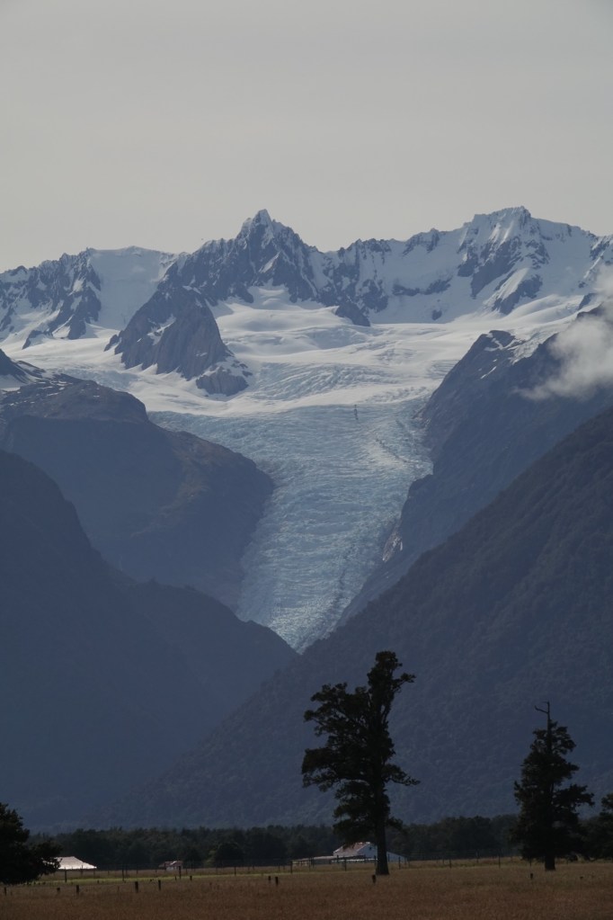 The Fox Glacier is a 13 km temperate maritime glacier fed by 4 alpine glaciers. It looks completely different from all the glaciers we’ve seen before, all of which ended in the water; this one once did too, hundreds of years ago when it still reached the coast. It has, unfortunately, been steadily receding.